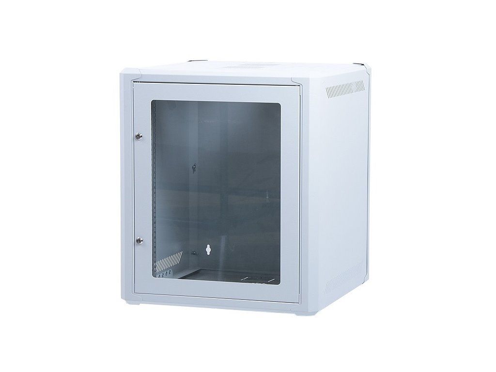 A new addition to Masterlan's product range are data switchboards. When handling, you will appreciate the robust solid construction while maintaining a favourable weight. The 12U/400 mm rack is delivered in a rolled state and its assembly is a matter of minutes without the use of any special tools - only 2 screwdrivers (flat and Phillips) are needed. Delivery in unfolded state facilitates transport and subsequent handling and saves transport costs. The switchboard is supplied with a glass door. The door can of course be installed with left or right opening. For hanging on the wall, there are 4 holes on the back. On the bottom and top side you will find ventilation holes and holes for wiring. On the sides, there are ventilation holes at the top and bottom. Technical parameters Physical characteristics Load capacity [kg]: 60 Fan option: Yes Degree of protection: IP20 Size: 19" Use: Indoor Number of "U" positions: 12 Weight [kg]: 20.3 Width [mm]: 601 Height [mm]: 682 Depth [mm]: 400 Door filling: Glass Demountable: Yes Colour: Grey General Switchboard type: Wall-mountedAdditional parameters