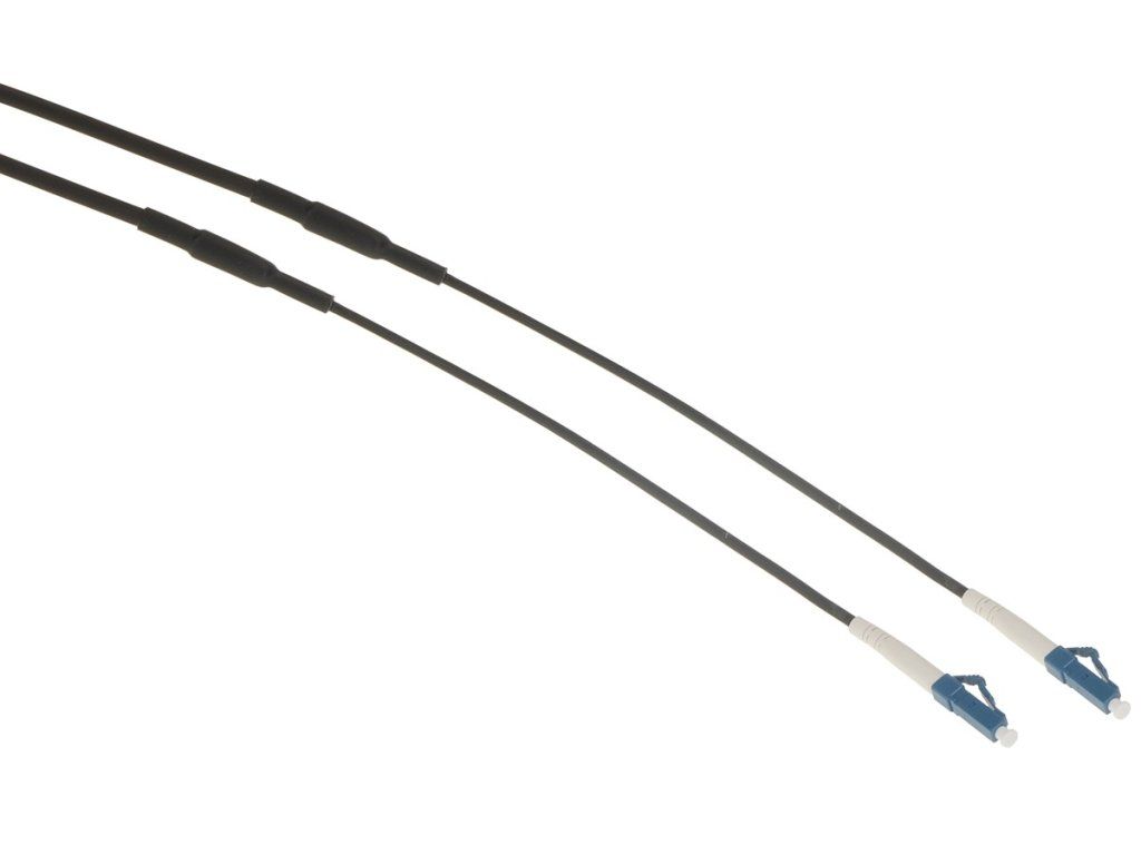 Masterlan optical outdoor patch cord suitable for outdoor installations, for example to connect a wireless linker that has an optical port and a data cabinet. The cable jacket is made of high quality UV stable material. Inside the cable there are two aramid tensile elements along with one SM fiber, which is fitted with a metal flexible neck at the ends, wrapped in PVC protection to prevent damage during less than gentle handling. The singlemode 9/125 fibre used is type G.657.A2 and is terminated with a single LC connector on both sides with UPC grinding. The length of the entire cable is 30 m.Additional parameters