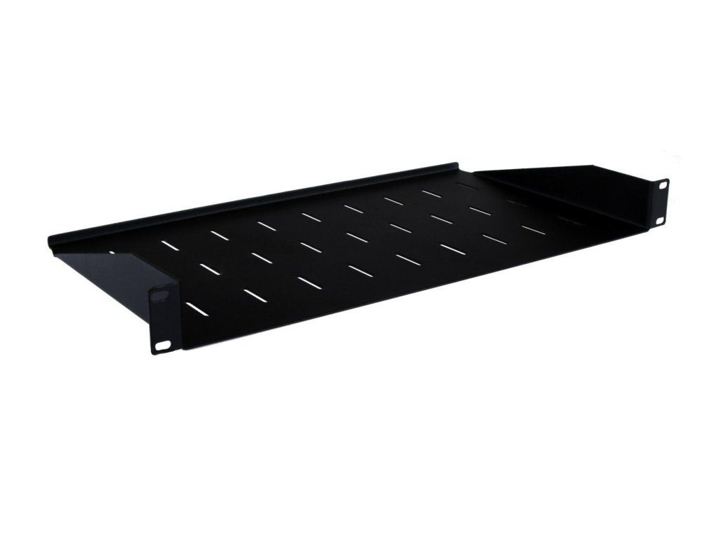 FS-A1-250-B is a solid black shelf with perforations for 19" racks. The shelf is 1U high, 250mm deep and has a weight capacity of 25kg. On the back side there is a practical raised edge that prevents the placed things from falling in.Additional parameters