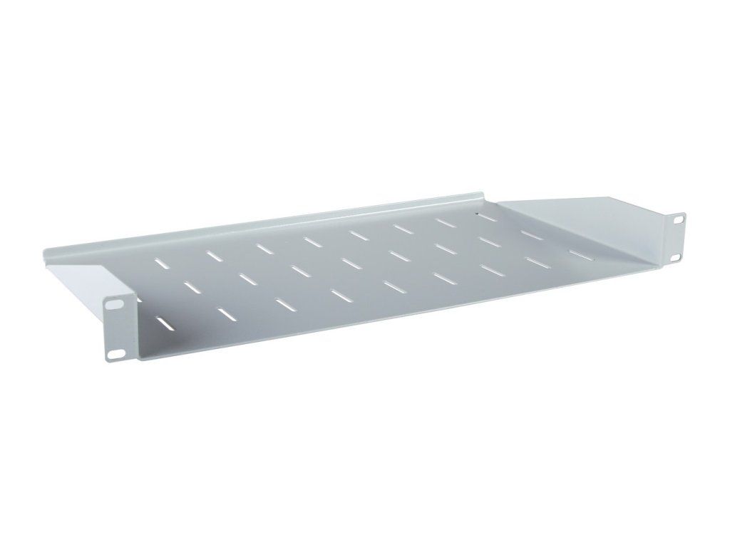 Masterlan fixed shelf with perforations, 1U, 19", 250mm, load capacity 25kg, grey