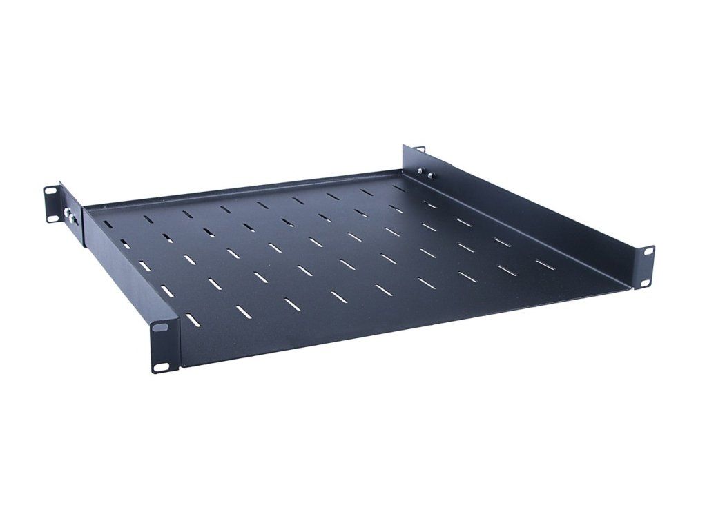 Masterlan fixed shelf with perforations, 1U, 19", 450mm, load capacity 40kg, black