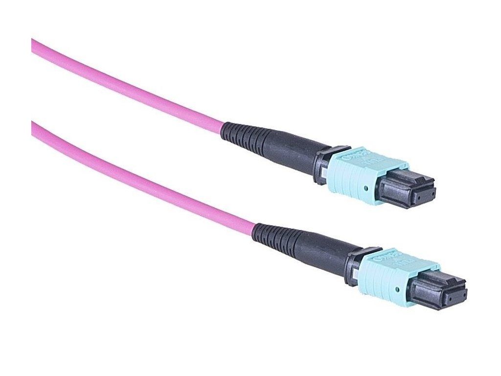 Masterlan optical MPO patch cord is suitable for connection of active devices to passive devices (optical switchboard, optical bath) or as connection of active devices or passive devices. The cable contains a total of 12 MultiMode OM4 50/125 fibers with MPO female connectors on both sides. Total cable length is 1m. The cable has fibers connected in type B, i.e. 1 - 12, 2 - 11, etc.Additional parameters