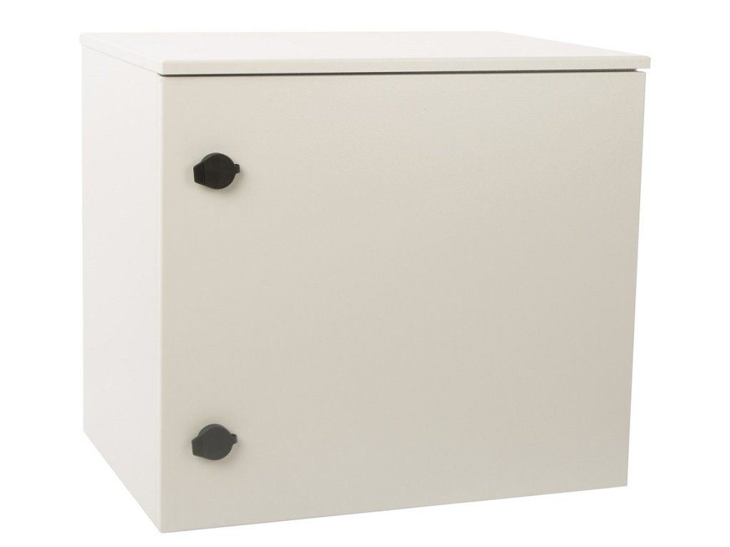 Outdoor switchboard of size 9U with a depth of 410mm. The switchboard is made of 2mm thick steel sheet, powder coated RAL7032 (grey), the door is equipped with a pair of locks. There are 4 holes for wall mounting. The switchboard can also be mounted on a pole with a diameter of up to 89mm or a column with a diameter of approx. 200mm. On the bottom of the switchboard you will find 5 holes with a diameter of 16mm and 1 hole with a diameter of 10mm with rubber grommets. Dimensions (H x W x D) 500 / 550 / 410mm. Magnelis finishAdditional parameters