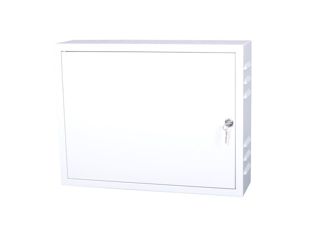 All-metal lockable switch cabinet with full rear face for CCTV, TV, SAT or WIF elements for indoor use with dimensions 520x400x140mm has several knockouts on the top and bottom side. Wall mounting with 4 mounting holes on the back of the cabinet. The cabinet is made of galvanized sheet metal with a glossy lacquer finish. There are ventilation holes on both sides of the cabinet. Each cabinet is individually packed in a 5 layer carton and the corners are protected with foam padding for maximum protection during transport. Technical parameters Physical characteristics Degree of protection: IP20 Ventilation holes: yes Depth [mm]: 140 Width [mm]: 520 Height [mm]: 400 Colour: Light grey 2x Wrench (included) 4x Screw hole - wall mountingAdditional parameters