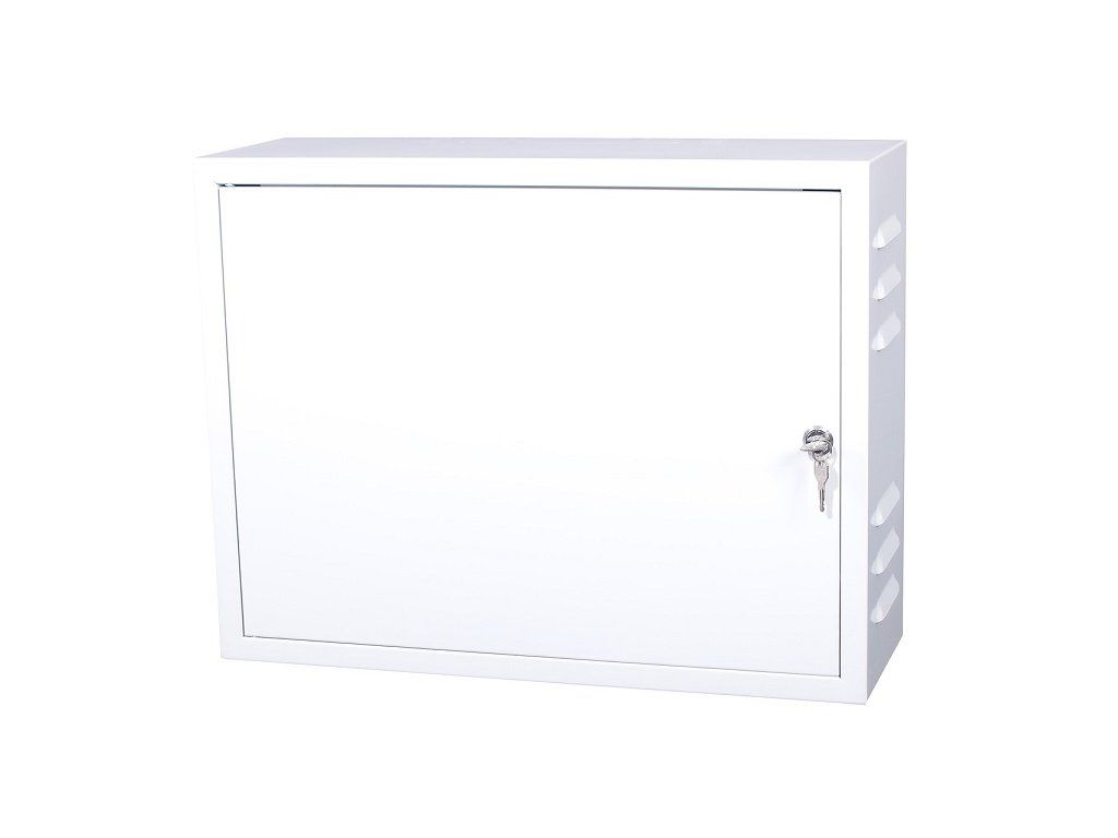 All-metal lockable switch cabinet with full rear face for CCTV, TV, SAT or WIF elements for indoor use with dimensions 520x400x180mm has several knockouts on the top and bottom side. Wall mounting with 4 mounting holes on the back of the cabinet. The cabinet is made of galvanized sheet metal with a glossy lacquer finish. There are ventilation holes on both sides of the cabinet. Each cabinet is individually packed in a 5 layer carton and the corners are protected with foam padding for maximum protection during transport. Technical parameters Physical characteristics Degree of protection: IP20 Ventilation holes: yes Depth [mm]: 180 Width [mm]: 520 Height [mm]: 400 Colour: Light grey 2x Wrench (included) 4x Screw hole - wall mountingAdditional parameters