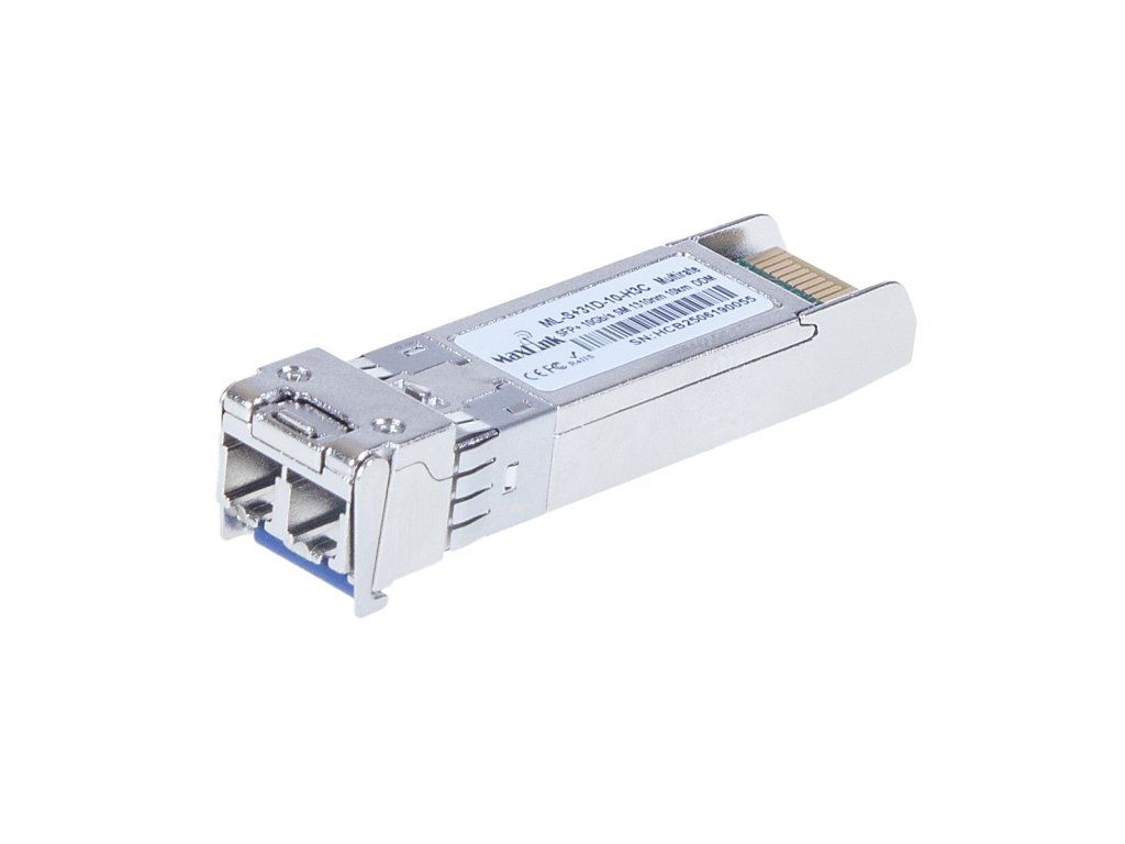Maxlink ML-S+31D-10-H3C is a 10G SFP+ module with 1310nm wavelength, two LC connectors and a maximum distance of 20km over singlemode optical fiber. SFP+ module supports monitoring (DDM). The LC connectors in the SFP+ module have UPC type grinding. H3C compatibility The modules are compatible with 3Com/HP/H3C A-series switches (A5120/5500/5800/5900/7500/10500 and others), as well as H3C S-series switches.Additional parameters