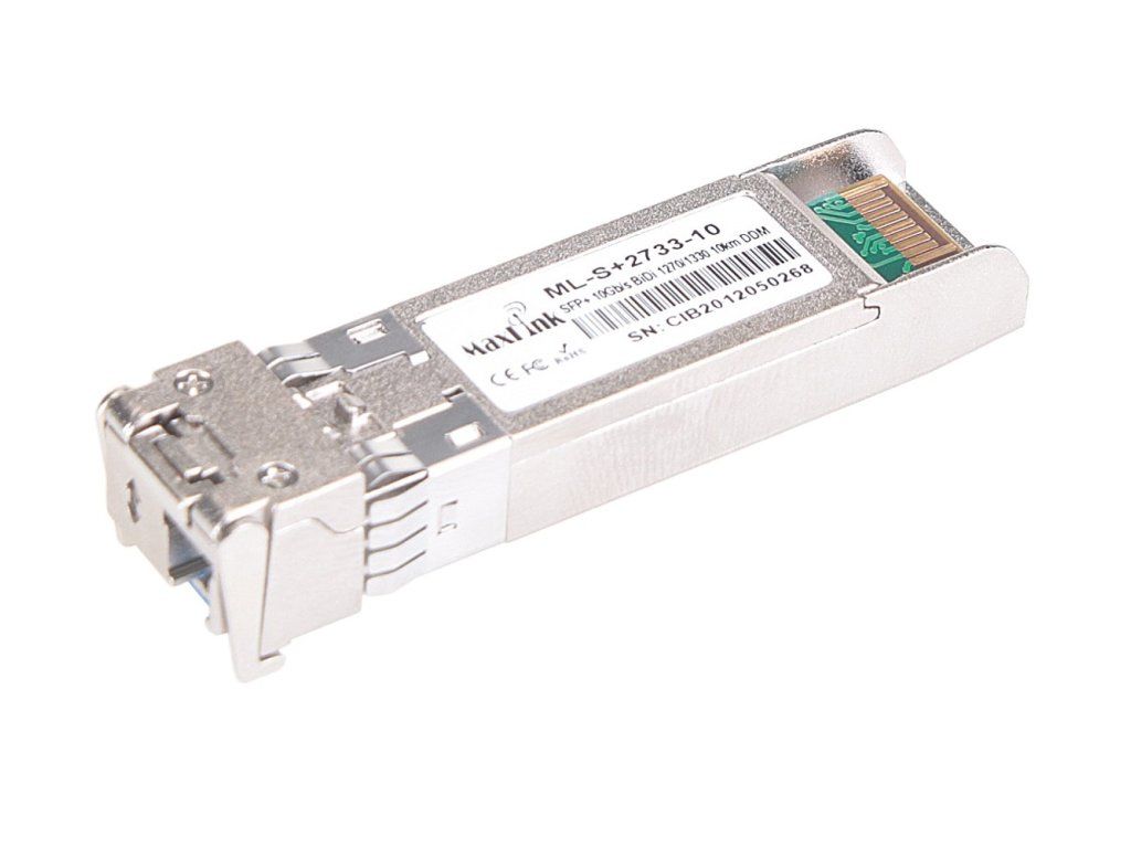 ML-S+2733-10 is a singlemode 10G SFP+ WDM module for data transmission using a single fiber with one LC connector. The wavelength (Tx/Rx) of this module is 1270/1330nm and is suitable for up to 10km distance. The module is "cisco compatibile" and is compatible with almost all active elements. The LC connectors in the SFP module have UPC type grinding.Additional parameters