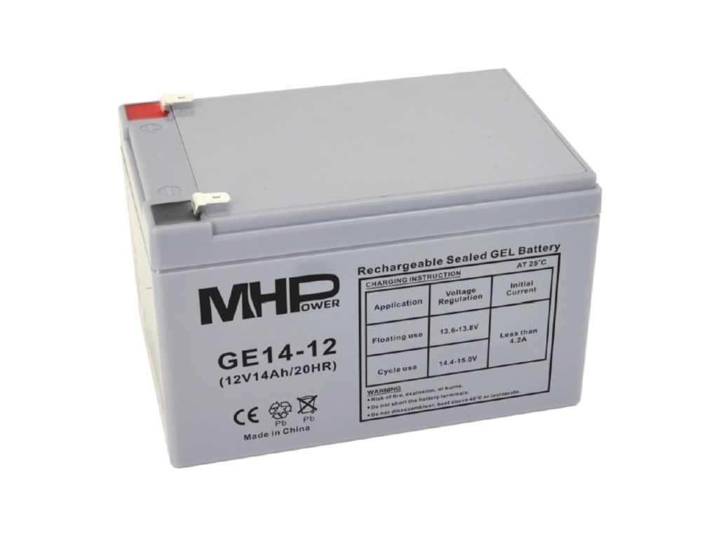 MHPower GE14-12 Gel battery 12V/14Ah, Faston F2 - 6,3mm, Deep Cycle