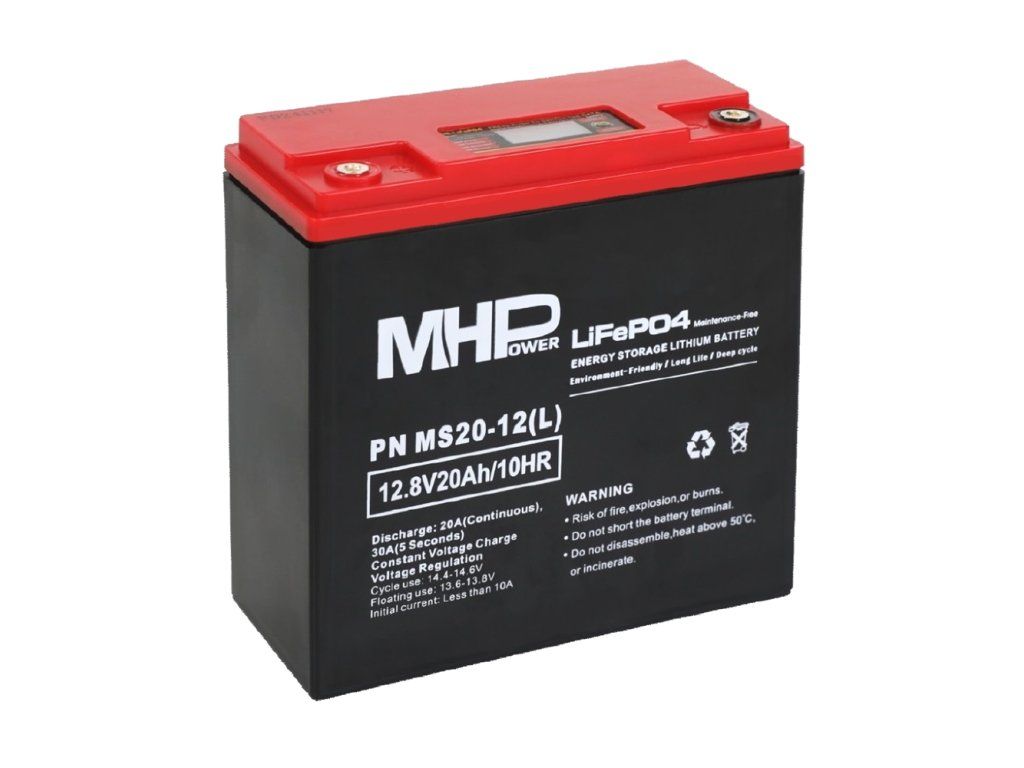 The lithium iron phosphate battery (LiFePO4) is characterised by its exceptional lifetime, capacity stability and charging speed. One of its main advantages is its very low weight, about 30% of the weight of lead-acid batteries. LiFePO4 batteries retain more than 80% of their capacity even after 2,000 charge cycles. Thanks to the low self-discharge, the battery will be fully functional even after one year of non-use. Due to their high lifetime, low weight and charging parameters, the batteries are used in recreational vehicles, caravans, boats or in combination with photovoltaics to power houses. MHPower LiFePO4 batteries are equipped with an integrated BMS (Battery Management System) that controls the discharge and charging processes. If a problem occurs during charging or discharging, the BMS immediately intervenes and adjusts the charging/discharging parameters or interrupts the charging/discharging process completely. Thus, no additional BMS is required. We have stress tested our MHPower lithium batteries at the Faculty of Electrical Engineering at the Czech Technical University in Prague, where their incredible robustness and stability were confirmed. The usable capacity of these batteries is at least 94%. Self-discharge only around 2-3% of capacity per year! So there is no need to recharge the battery regularly before and after the season. Safety: LiFePO4 have an extremely stable chemical composition and are safe. LiFePO4 are NON-FIREABLE! They will not explode or ignite on impact in the event of overcharging or short-circuiting. Key Features - Maximum charging current: 20A - Maximum discharge current: 20A - Battery capacity: 20Ah - Degree of protection: IP55 - Number of operating cycles: 3000 to 9600 - LED display: YES Physical characteristics Operating temperature [°C]: 0 to 60 Weight [kg]: 2.22 Width [mm]: 182 Height [mm]: 165 Height with connectors [mm]: 165 Depth [mm]: 77 Product information: LiFePO4 batteries are a type of lithium-ion batteries that have many advantages such as high capacity, long life, safety and durability. However, like other lithium-ion batteries, they also have some disadvantages, which include reduced performance at low temperatures. At negative temperatures or freezing, several adverse phenomena occur that affect the performance of LiFePO4 batteries. These include: - Slowing of ion diffusion in the electrolyte and electrodes. This reduces the rate of chemical reactions that generate electric current. This means that the battery has lower capacity and performance when discharging and lower efficiency when charging. - Increasing the internal resistance of the battery. This causes a loss of energy in the form of heat and reduces the battery voltage. This limits the maximum current that can be drawn from or supplied to the battery. - Risk of damage to the battery. If the battery is charged at temperatures below 0°C, lithium dendrite formation on the anode may occur. These are sharp crystals of lithium that can puncture the separator between the electrodes and cause a short circuit or fire. It is therefore recommended to charge LiFePO4 batteries only at temperatures above 0 °C. For these reasons, it is advisable to operate LiFePO4 batteries in the temperature range of 0 °C to 60 °C to ensure optimum performance and lifetime. At lower temperatures, the battery must be protected from frost and charged carefully.Additional parameters