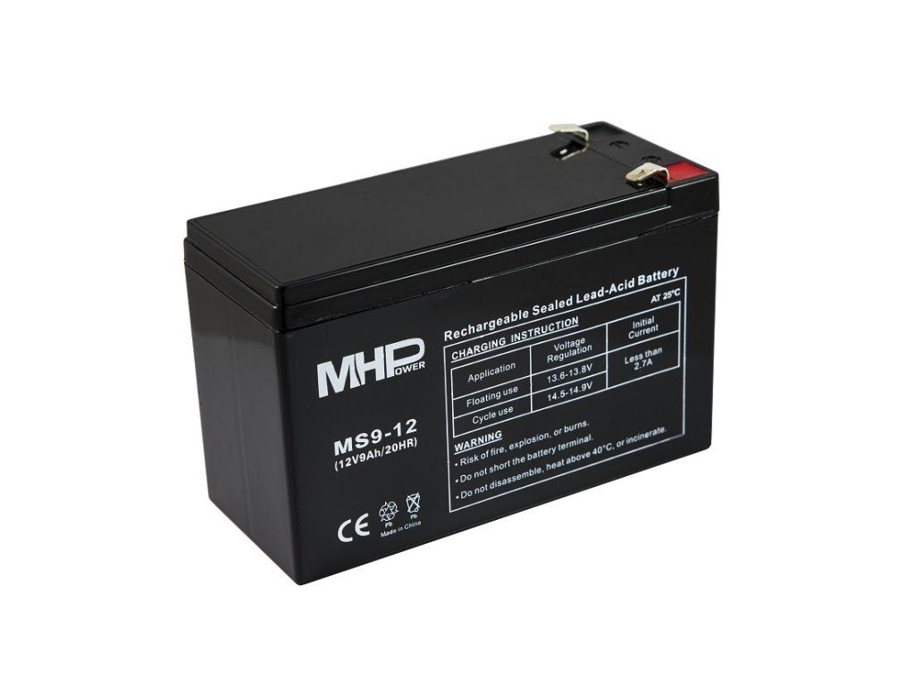 MHPower MS9-12 AGM 12V/9Ah lead acid battery, Faston F2 - 6,3mm