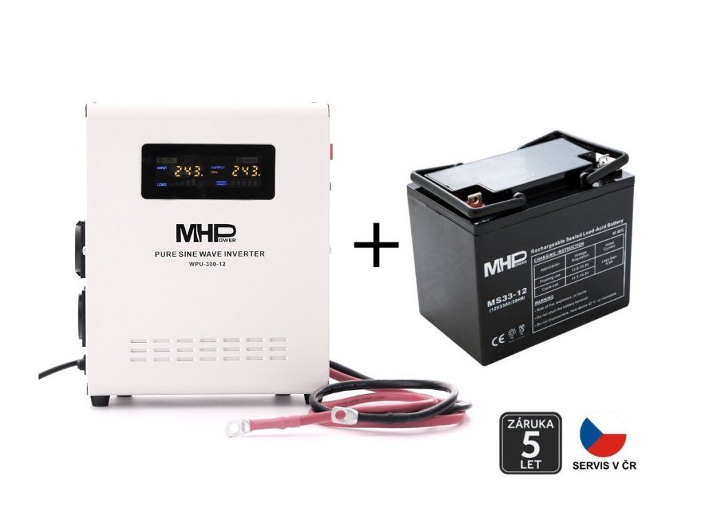 MHPower WPU-300-12, UPS, 300W, pure sine, 12V SET with 33Ah battery