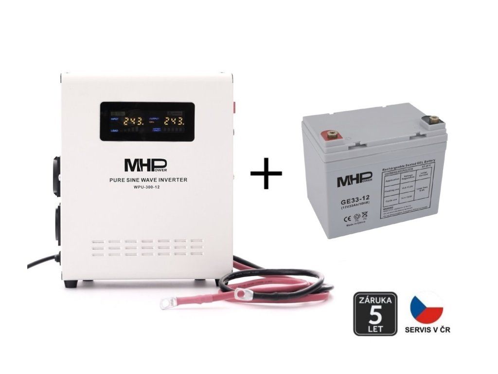 MHPower WPU-300-12, UPS, 300W, pure sine, 12V SET with 33Ah gel battery