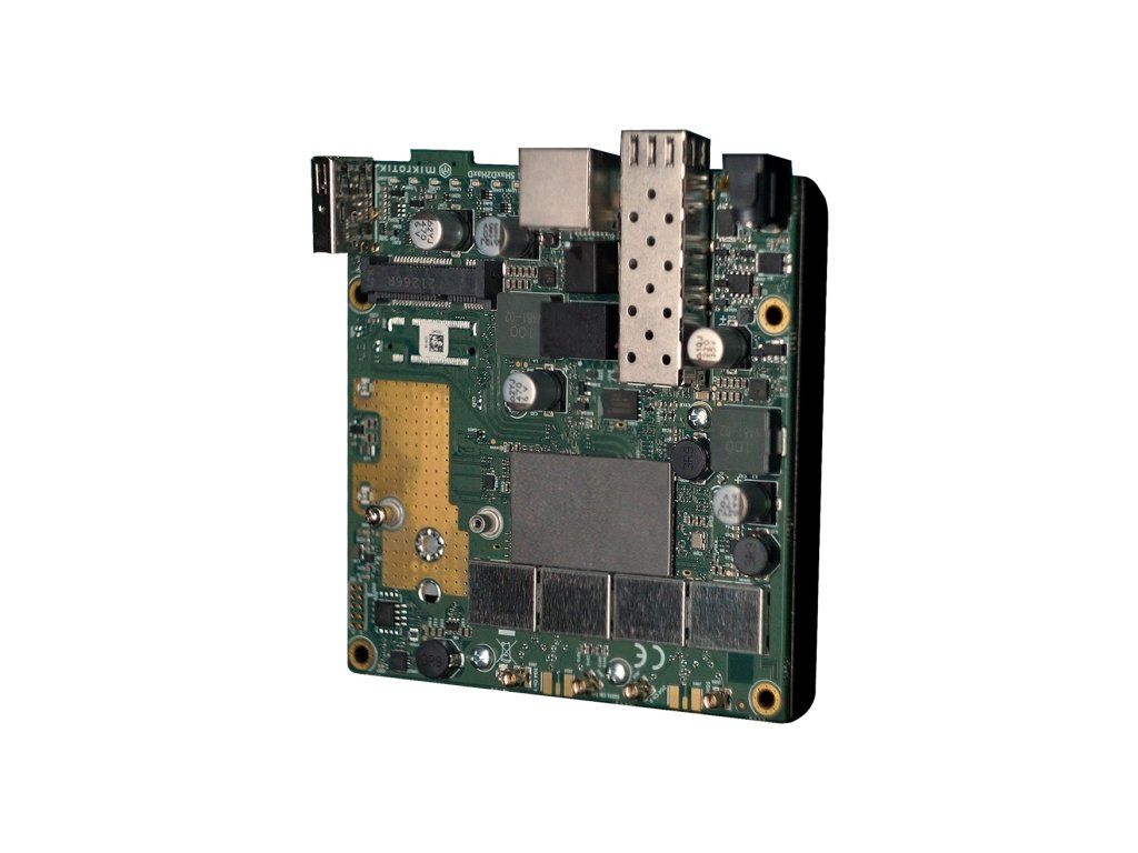 The new Mikrotik RouterBOARD L23UGSR-5HaxD2HaxD is a dual-band WiFi6 RouterBOARD with which you can create your own installations. You can use it to create your own low-cost outdoor access points or CPEs, for any home or office connection, or you can use it to embed your own product such as smart vending machines or as an IoT gateway. The advantage of the Mikrotik RouterBOARD solution is that it comes with RouterOS with L4 license and no additional monthly or license fees, you purchase and use. RouterBOARD L23UGSR-5HaxD2HaxD is equipped with 1x1G ETH port, 2.5G SFP port and USB port. There are 4x MMCX connectors on the RouterBOARD for connecting antennas. It also includes a free miniPCIe slot with a SIM slot for fitting an LTE modem or LoRA card, so you can create a backup cellular connection or IoT gateway.Additional parameters