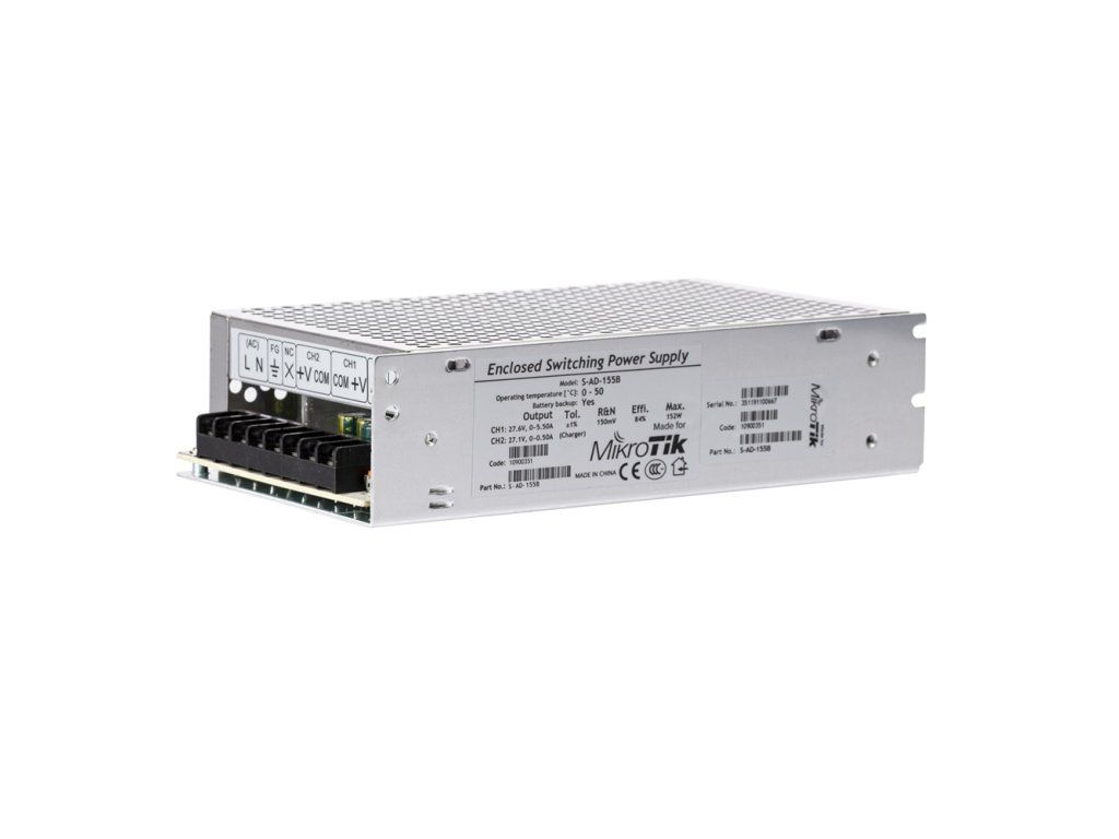 Mikrotik OEM industrial switching power supply with 27.6V output, 5A maximum current and 155W total output power. ATTENTION: The power supply does not have a charging function, which is incorrectly listed on the device label. Only the CH1 terminals are used as outputAdditional parameters