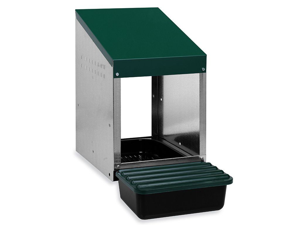 A nest for hens with the collectionegg basket single-seater,capacity for up to 5 laying hens per cuckoo, the bottom of the nest is sloped, the egg rolls itself into a collectingtrashmademade of galvanised metal with plastic bottom, paintgreen. You can simply build in the henhousedown orhang on the wall, veryeasy maintenance purity, rdimensions: 48 cm length x 27 cm width x 52 cm height.