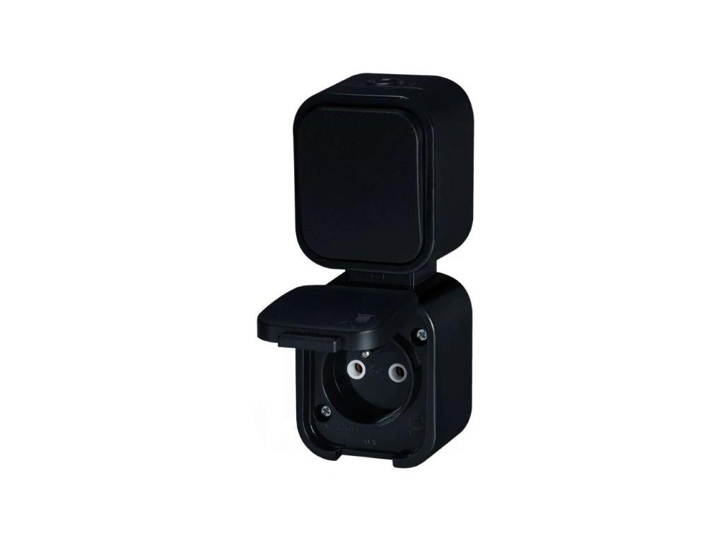 GWN-B2/P jednoduchá zásuvka 2p+Z s krytkou + spínač IP54 čierna vertikálna