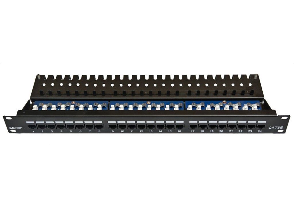Patch panel LEXI-Net UTP CAT5E 24p. 1U Black, 19" top notch
