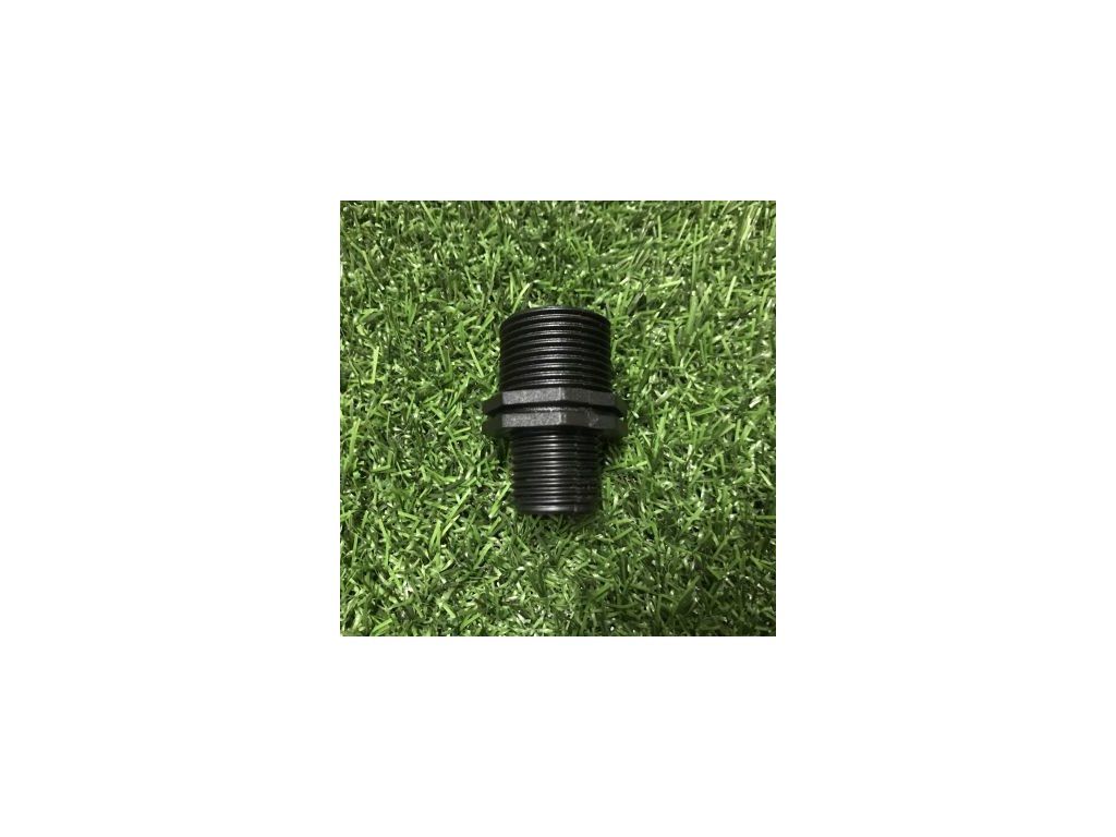 Polypropylene threaded reducer with one 3/4" male thread and a second 1/2" male thread is used in irrigation systems. The reducer is suitable for water installations wherever it is necessary to change the size and type of thread.Additional parameters