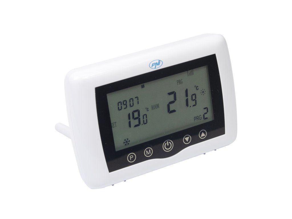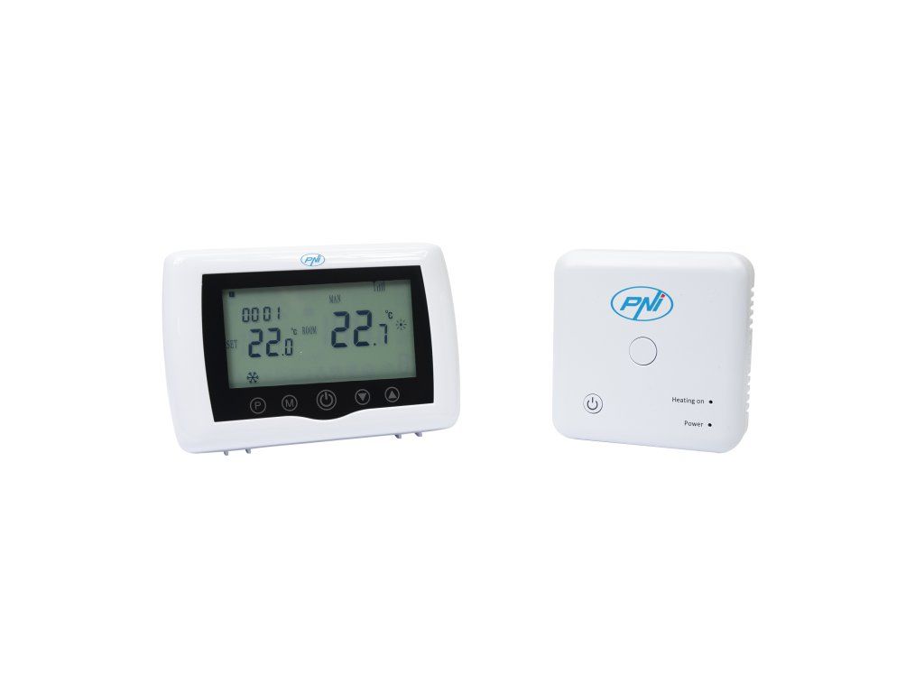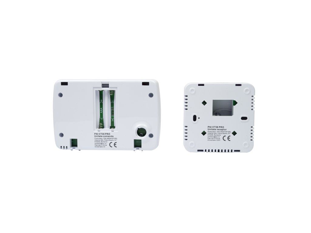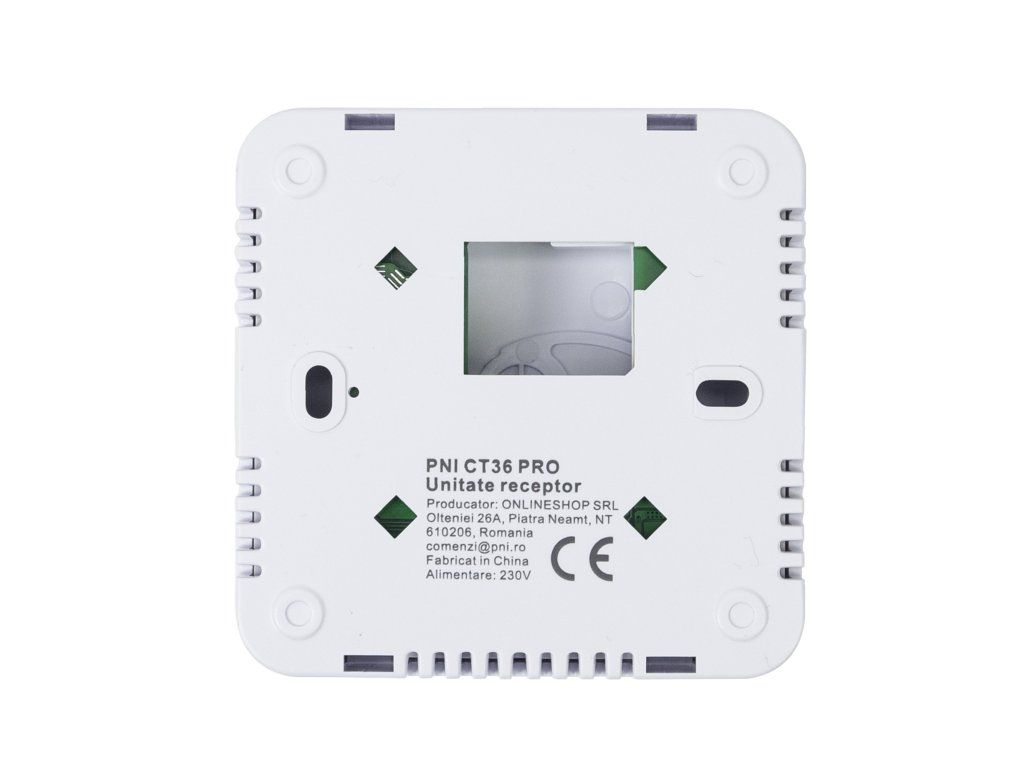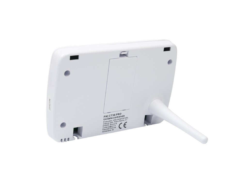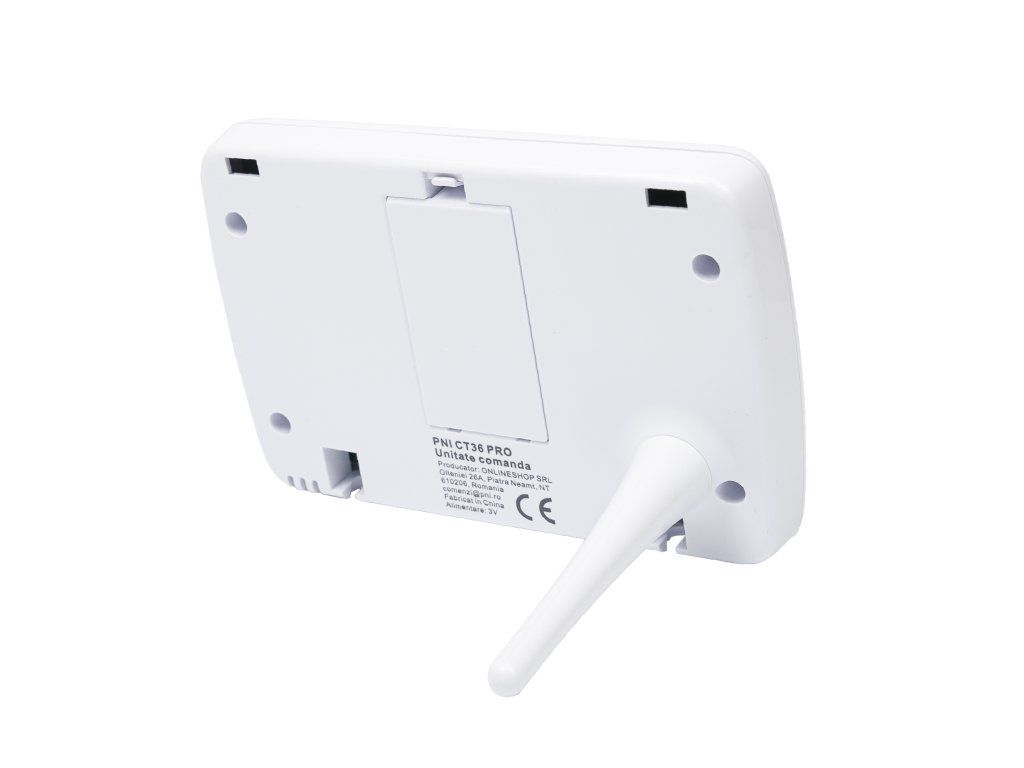 The PNI CT36 intelligent thermostat comes in a package with accessories for mounting on the wall or with a table/desk stand. The receiver unit also has included in the package the necessary elements for attaching to the wall.