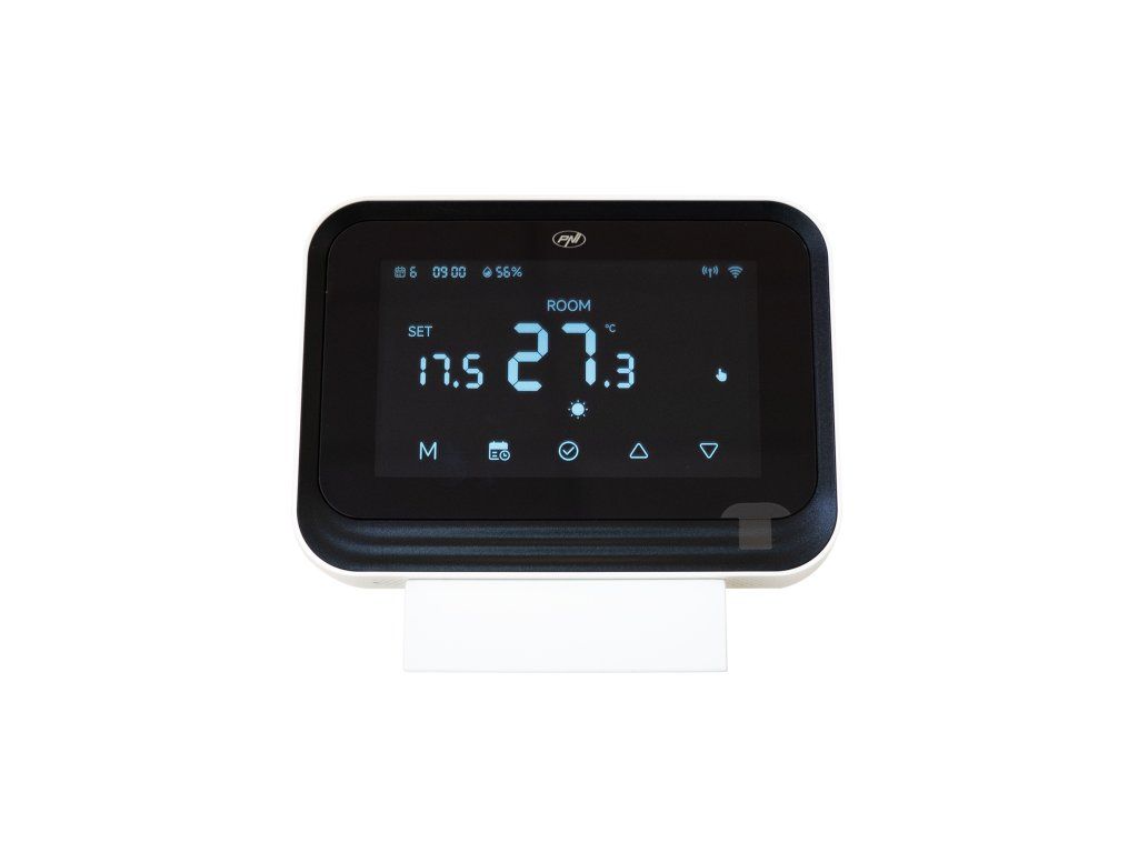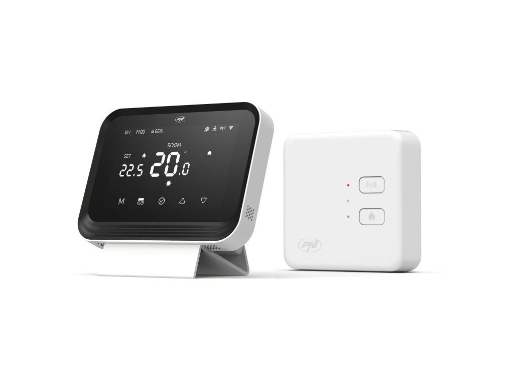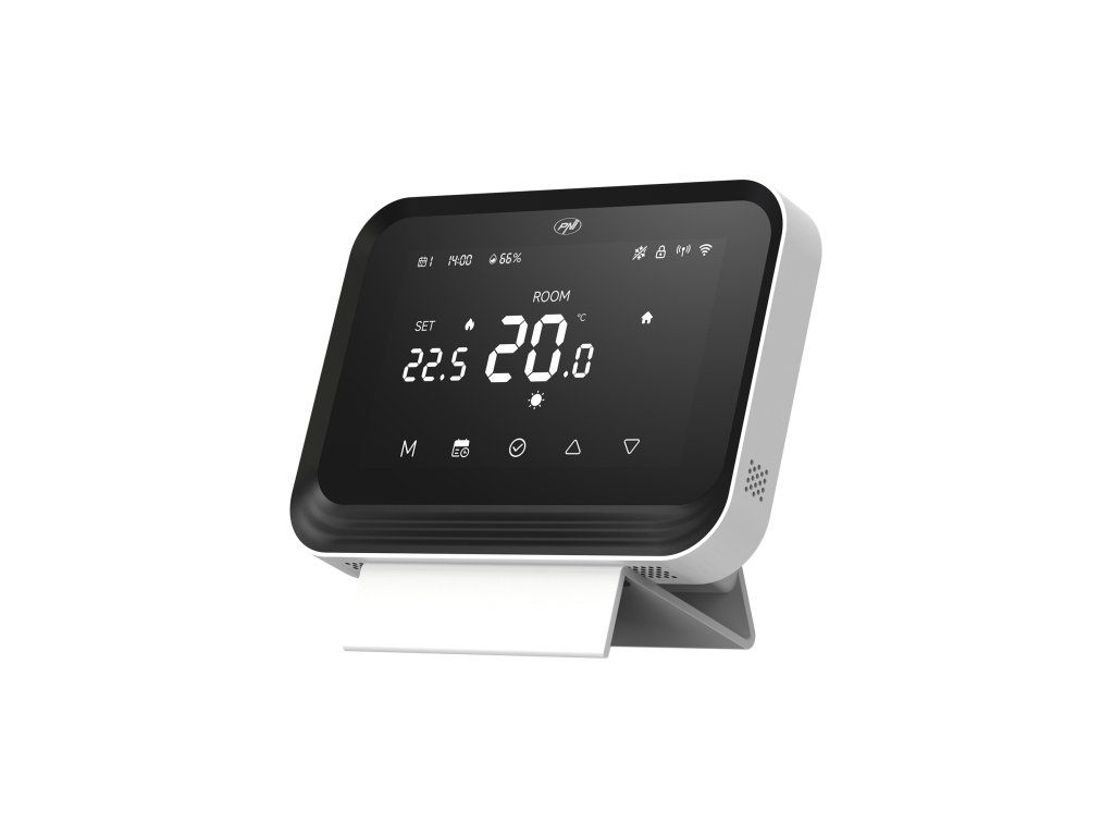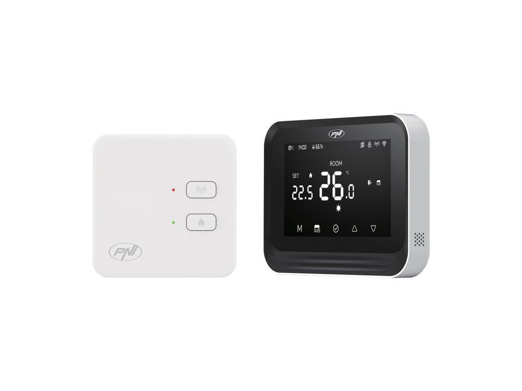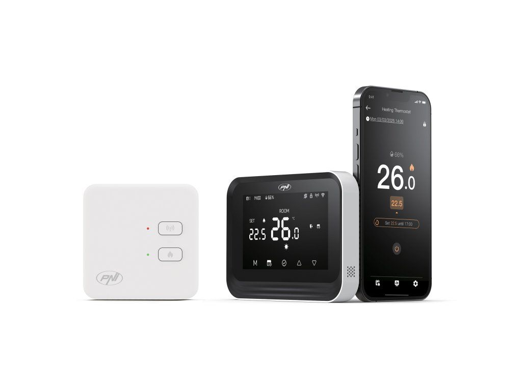 The PNI CT45 smart thermostat is a device designed for controlling heating plants via Wi-Fi and RF connection, with the possibility of direct management from the phone through the Tuya Smart app.