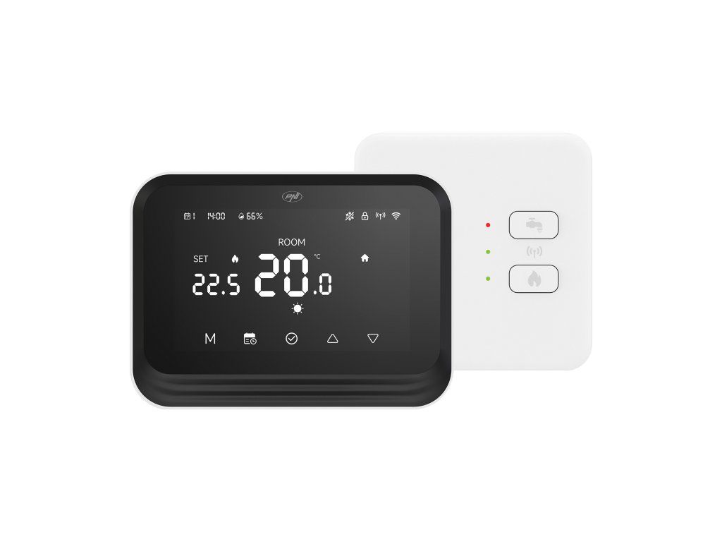 | Functions | - 2 multifunctional buttons - 2 status display LEDs - Can close a classic NO (Normal open) control circuit of a heating plant that complies with the relay parameters |