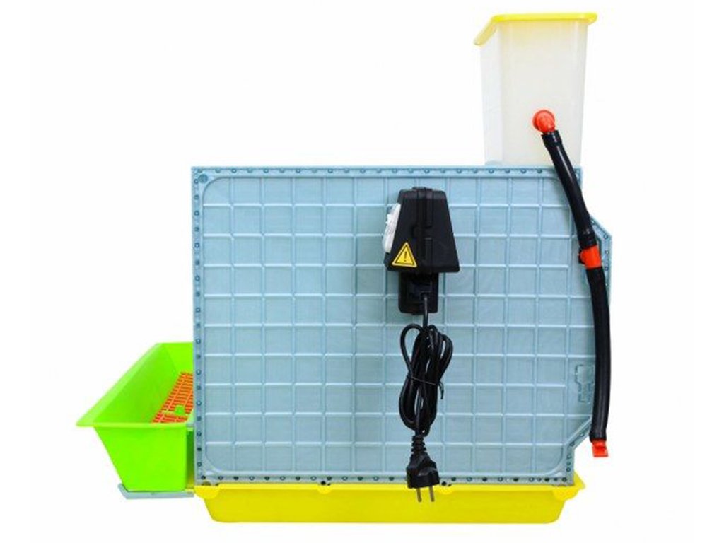 Teplo i svetlo potrebné k rastu vyliahnutých mláďat je zaistené pomocou automatickej ohrevné jednotky odchovne hydiny. Jednotka je vybavená elektronickým termostatom, u ktorého je možné regulovať teplotu v rozmedzí od 0 do 40°C. Výhrevná časť jednotky je samozrejme vybavená ochranným krytom, ktorý zamedzuje dotyku mláďat s vykurovacími káblami a nehrozí riziko popálenia. Ohrevná jednotka ďalej ponúka možnosť stabilného zdroja svetla za pomoci žiarovky (nie je súčasťou balenia). Potrebný výkon žiarovky sa stanovuje v závislosti od teploty v miestnosti, kde bude odchovňa hydiny umiestnená a nesmie byť vyššia ako 75W. Bližšie informácie nájdete v návode nižšie.