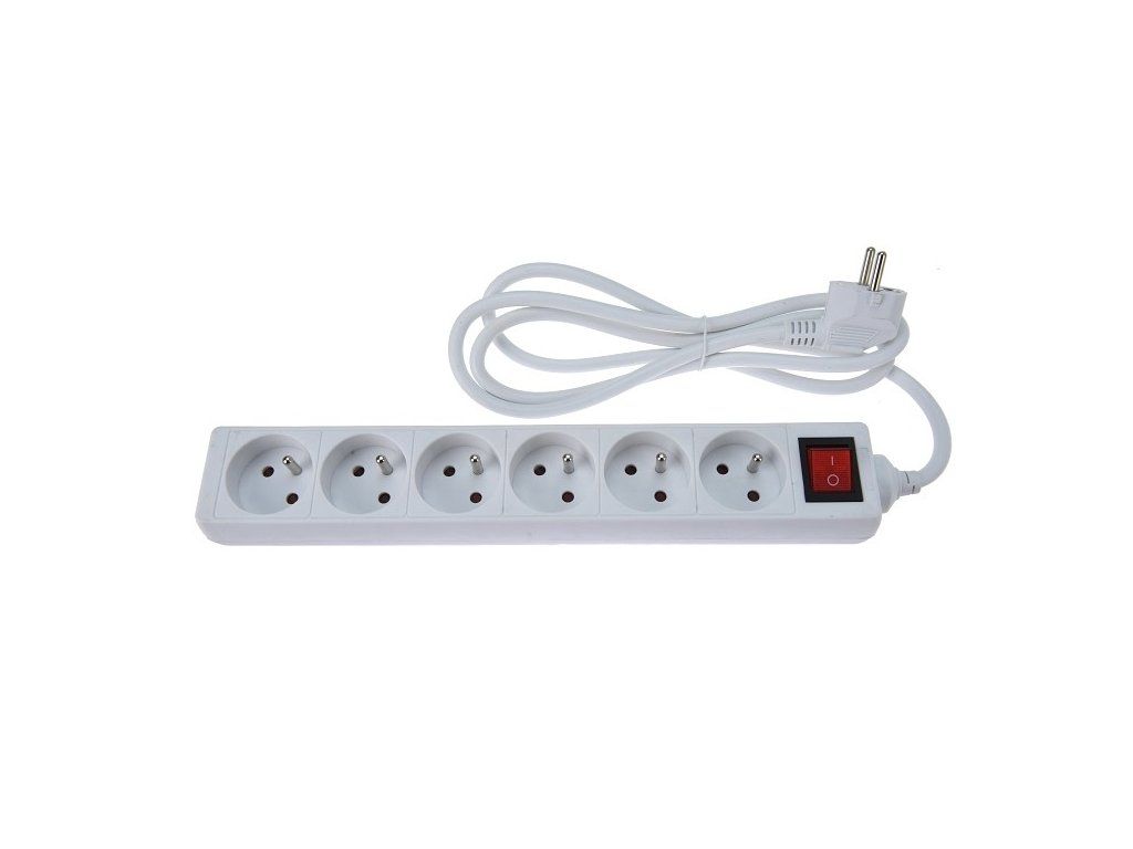 Practical extension cable with 6 sockets. The cable also features a central switch for easy and quick disconnection of appliances from the mains. - Parameters and specifications: - Number of sockets 6 - Cable length 10 m - Central switch - Packed in PE bag with hanging system. - 250 V max 10 AAdditional parameters