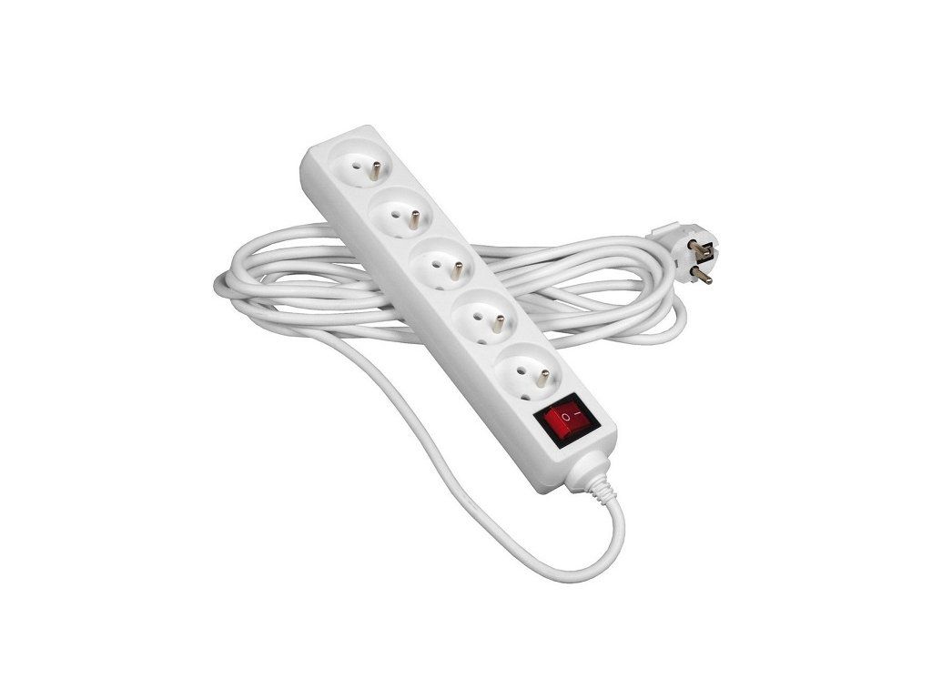Practical extension cable with 5 sockets. The cable also features a central switch for easy and quick disconnection of appliances from the mains. - Parameters and specifications: - Number of sockets 5 - Cable length 7 m - Central switch - Packed in PE bag with hanging system. - 250 V max 10 AAdditional parameters