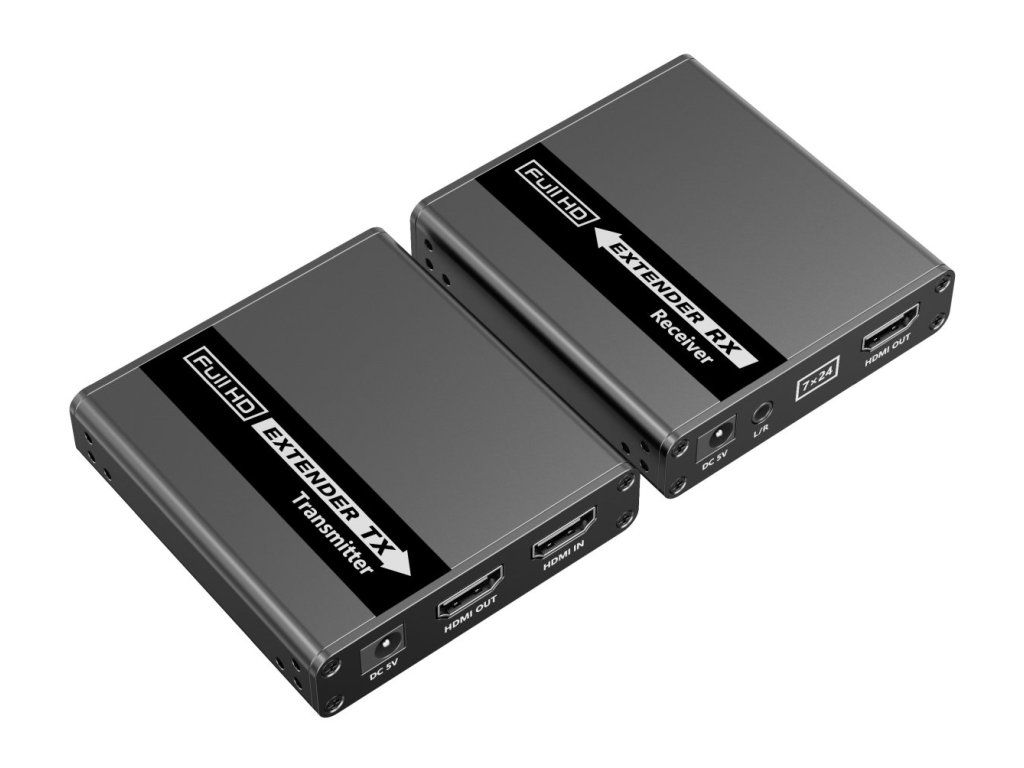 PremiumCord HDMI extender FULL HD 1080p to 70m via Cat6/Cat6A/Cat7 HDMI Extender allows you to transmit HDMI signal over long distances using CAT6/6A/7 network cable. By using a network cable, it is possible to achieve up to 70 meters of transmission length with FULL HD 1080p video resolution. - HDMI extender up to 70 meters - The set includes a transmitter and receiver that connect with a high quality Cat.6/6A/7 cable - Supports FULL HD 1080p (1920x1080) resolution - Supports HDR - Audio output on the receiver is a 3.5mm stereo jack - Video resolution: 480i @ 60 Hz, 480p @ 60 Hz, 576i @ 50 Hz, 576p @ 50 Hz, 720p @ 50/60 Hz, 1080i @ 50/60 Hz, 1080p @ 50/60 Hz - Supports HDMI1.4 and HDCP 2.2 - Supports two-way IR remote control - Zero latency, no compression loss, no signal delay - HDMI signal can be transmitted up to 70m over Cat.6/6A/7 cable; up to 40m on Cat.5E cable - Connectors on the transmitter: HDMI input, HDMI output for local monitor, RJ45 connector, power connector, 2x IR connector - Connectors on receiver: HDMI output, RJ45 connector, power connector, 2x IR connector, stereo jack 3.5mm audio output - HDMI signal source control: controllable via IR passback from RX to TX - Transmitter supports HDMI loopback, transmitter also has HDMI output for local monitor - Supports bidirectional IR passback function (20-60 kHz) - Lightning-proof, surge-proof and anti-static protection - Metal housing, stable and durable - Supports HDMI 1.4 - Supports HDCP 2.2 - Size: Width: 75 mm, Depth: 80 mm, Height: 18 mm - Operating Temperature: 0~50°C - Storage Temperature: -10~70°C - Relative Humidity: 0 ~ 90% (non-condensing) Package contents 1x transmitter 1x receiver 2x 5V power supply 2x IR sensor on cable 1x User manualAdditional parameters
