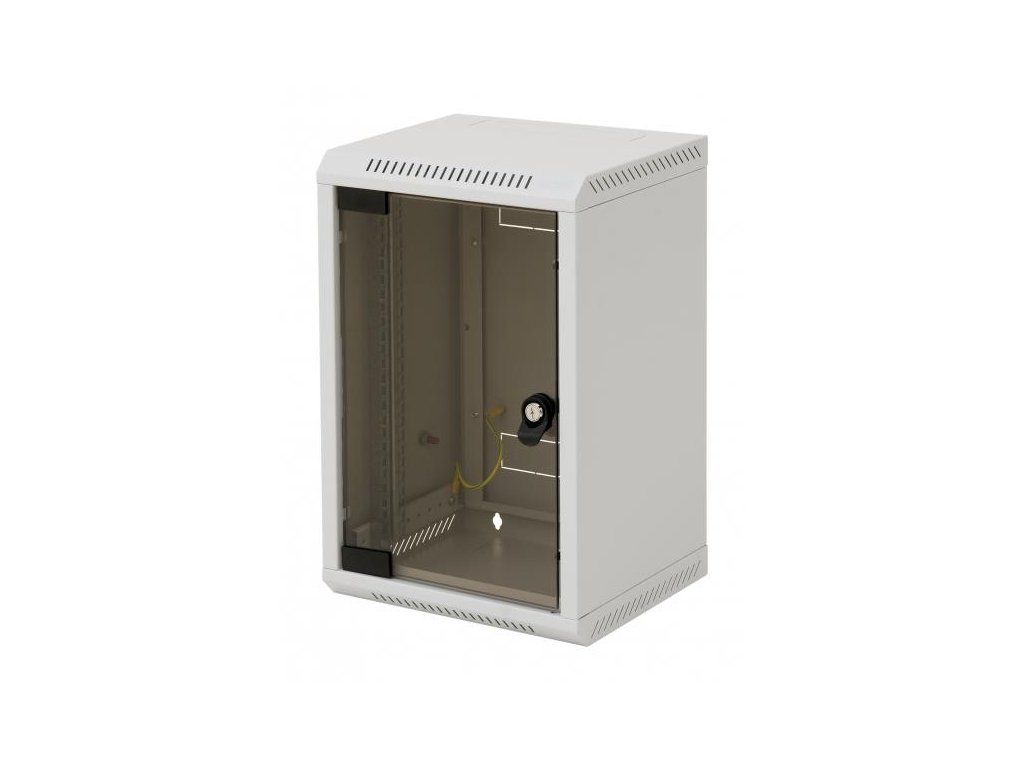 The RACK TRITON 10" is a wall-mounted rack that can be used for small projects. It can carry a maximum load of 20 kg and is available in neutral grey. The cabinet doors are made of 5 mm safety tempered glass as standard, but can be made of steel sheet or perforated on request. For easy access, the hinge system allows the door to be opened at an angle of almost 180° or the door can be easily removed. - 10" wall-mounted cabinet with IP 30 protection - The switchboard is directly mounted on the wall. - Two adjustable vertical rails are included. - Panel construction: - Compact welded switchboard - All-glass door with 4 mm safety tempered glass. On request, all-panel or perforated. - The permissible load for each door is max. 10 kg. - The minimum thickness of the surface finish is 65 µm. - The switchboards are designed for the installation of data and telecommunications equipment and its distribution systems. - The frame of the switchboard and all separable parts (side and rear covers, doors, etc.) are connected by means of interconnecting cables which must be thoroughly attached and inserted into the connectors throughout the use of the switchboard. - There is an M5 screw on the side wall of the enclosure for connecting the interconnection. - Cable entries covered with breakaway plugs are located at the top and bottom of the rear wall of the switchboard, others are on the top and bottom wall of the switchboard. Technical parameters: Type: wall-mounted, two-piece Pitch: 10" Protection: IP30 Door: glazed Height. 6 U Dimensions wxh: 310x260 mm Colour: grey Weight: 6,9 Kg Max. load: 20 Kg Included with the rack: 2 x front door key 4 x 6x50 screws 4 x washer 6,6 4 x dowel 10 8 x floating nuts M6 Conditions of use - Operating environment: - Office - The switchboard is not intended for outdoor installations and for installations in environments that may adversely affect the functionality of the switchboard and installed equipment (e.g., explosive or wet and humid environments) - Must be protected against: - Mechanical damage - Improper handling - Use other than that for which the enclosure is intended - Improper handling is in particular: - Overloading (exceeding the maximum recommended load capacity) - Installation of equipment that may adversely affect the operation and function of the switchboard or installed equipment - Interference with the construction and design of the switchgear Installation of the switchboard - This type of switchboard is hung directly on the wall using screws, dowels and washers (supplied). The spacing of the holes for hanging is marked with "R" on the switchboard diagram. - To ensure the maximum recommended load capacity, it is essential that the enclosure is mounted on a wall of adequate load capacity (brick, concrete or similar) and that the installed load is evenly distributed in the enclosure. Environmental protection - All parts are made of recyclable materials and must be disposed of in accordance with the applicable regulations when the enclosure is discarded. Certificates and Conformity - This product is certified by ITI TÜV, certificate number 06.140.500, revision No. 1, dated 3 January 2013 and fully complies with EN 62208 ed.2:2012(EN 62208:2011).Additional parameters