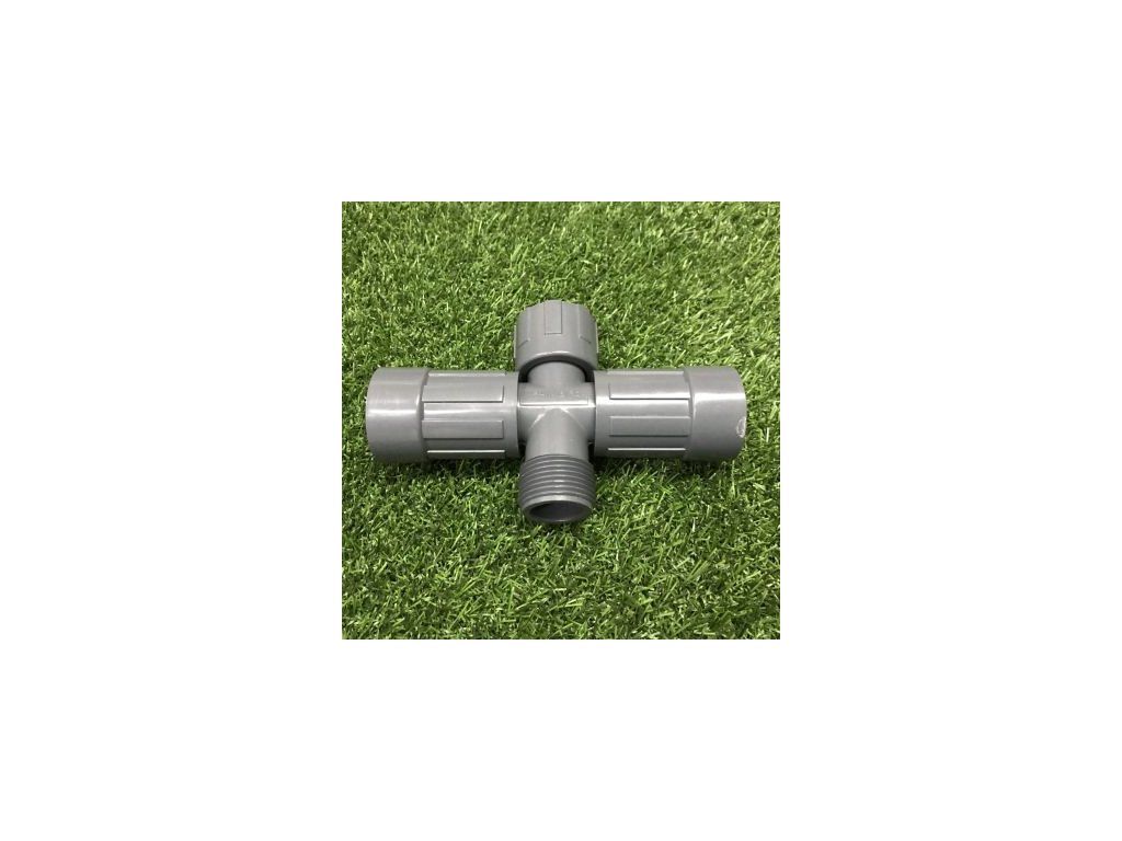 Holder cross with one 1'' male thread and three 1" female threads with locknut. The cross is designed as an electrovalve manifold to create a manifold, branching in an irrigation system.Additional parameters