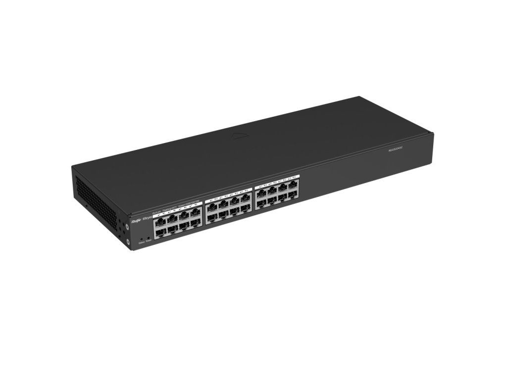 Ruijie Networks' RG-ES224GC, a smart 19" rackmount switch with cloud and web-based management, offers a cost-effective solution with 24 Gigabit LAN ports. This compact switch is ideal for network applications that require performance and reliability. In terms of feature list, the switch offers silent fanless operation, support for up to 16 VLANs, DHCP snooping, cable testing and anti-twist protection. Key Features 24× 10/100/1000 Mbps LAN ports High quality design, metal chassis, 19" rackmount design No venilator Low power consumption - max. 14 W Management via web interface and cloud Lifetime management on Ruijie Reyee Cloud anytime, anywhere IP camera recognition - unique value for CCTV network Automatic anti-twist prevention Package contents Device Rack mounts Power cordAdditional parameters