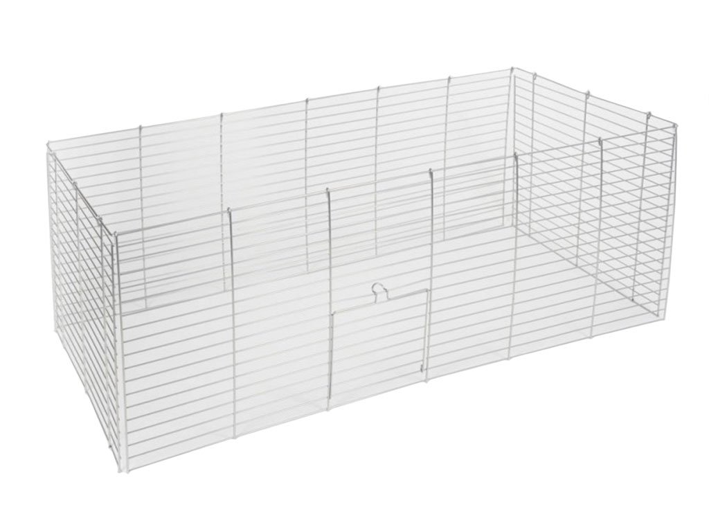 Klietka má plastové dno, kovové mriežky a celá váži cca 15 kg. Je navrhnutá tak, aby jej skladanie a rozobranie zabralo čo najmenej času a bolo čo najjednoduchšie. Vďaka praktickému zasúvaciemu systému do plastového dna zasuniete mriežky a zafixujete ich klipsami. Rozteč kovových mriežok je 2,2 cm. Klietka je určená na vnútorné použitie.