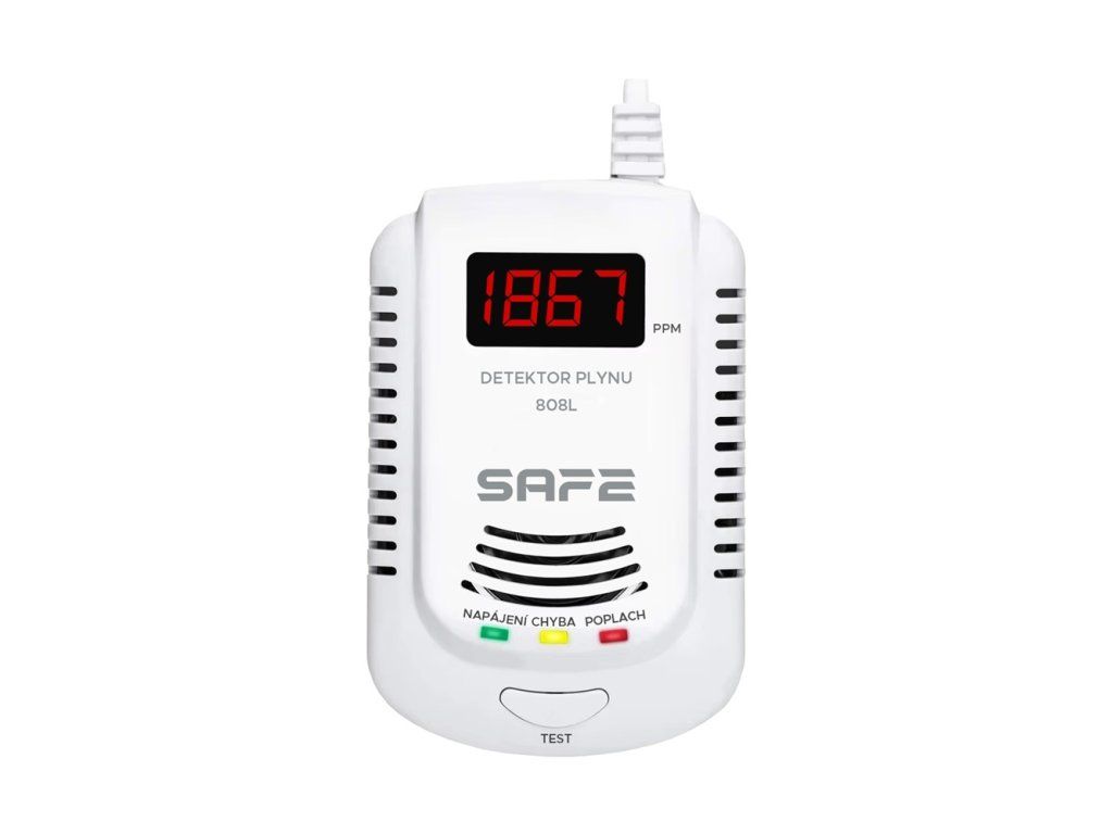 SAFE-808L flammable and explosive gas detector with battery backup, digital display and unique voice warning function in Czech language. The SAFE 808L is a hardware upgraded version of the intelligent detector equipped with the latest second generation solid-state multifunction sensor technology for detection and early warning of the presence of almost all flammable and explosive gases: - natural gas - methane - propane - butane The device excels in stability, high sensitivity and long sensor life. Ideally suited for detecting gas leaks from all domestic gas appliances and gas boilers. It detects all flammable gases commonly found in households. Digital display For a more comfortable overview and control of the situation in the event of an alarm, the SAFE 808L detector has a backlit digital display that shows the values of the detected combustible gas in units of ppm (or millionths). The digital display allows its users to distinguish and compare low and high values of potential danger in order to react adequately to an emerging situation or to specify the concentration of a leak in the event of a report to a service organization. Unique voice warning function It informs the user with a human voice (in English) about the current status of the device, such as "Welcome to the flammable gas detector, please wait 3 minutes, the device is initializing." In case of a detected danger, the detector's acoustic alarm signal is then accompanied by a repeated message informing about the detected danger: "PLEASE ATTENTION! GAS LEAK!". The voice warning is thus a great help for the user to immediately distinguish the information messages issued by the device. Maximum reliability The multifunctional integrated sensor detector meets the highest European safety standards and is certified and calibrated to EN 50194 (standard for electrical equipment for the detection of flammable gases) without the additional need for periodic service calibration. The device is microprocessor controlled and signals gas leaks both optically and acoustically. The second generation sensor performs continuous air testing for the presence of dangerous levels of gas concentration in the monitored area. The uncompromising guardian of safety Most flammable and explosive gases are normally odourless. Therefore, to make them easily detectable by smell in the event of a leak, most gases are coloured (odoured) with special chemicals. Whether the gas is odorized or not, the SAFE 808L detector sensor is factory configured to reliably detect gases to trigger an alarm before a certain concentration threshold is reached, which if further increased poses a potential hazard risk, and safely protect your health and property. Protection even in the event of a power failure Solid-state catalytic combustion sensors for the detection of flammable and explosive gases require a constant power supply from the mains. The SAFE 808L detector is powered from the 230 V / AC mains, but unlike most conventional detectors, it has an integrated fast-charging converter and a tray to accommodate a 9 V NiMH backup battery (battery not included as standard), which provides maximum protection for a certain interval in the event of a mains power failure. Function test The detector is equipped with a TEST button with a function that serves to simulate the presence of gas artificially and allows the operability of the internal circuits to be verified through an automatic efficiency monitoring system. The SAFE - 808L gas detector is ideally suited for detecting gas leaks from all domestic gas appliances and gas boilers. It detects all combustible gases commonly found in households. The device is powered from a 230V/AC mains supply with a 9V NiMH battery backup in case of mains power failure. Areas of application Residential areas with kitchens equipped with gas stoves, domestic boiler rooms with equipment burning natural gas, propane-butane or rooms where gas equipment is located, such as: gas cylinders, tanks, gas pipes, garages for gas-powered cars, school chemistry and physics workshops and laboratories. Where to install a detector? We install combustible and explosive gas detectors in rooms with potential gas leaks (gas boiler rooms, kitchens, rooms with wavettes, karma, instantaneous heaters, thermometers, etc.). The basic criterion for the correct placement of the detector is the identification of the gas, i.e. whether we detect light gas (rising up to the ceiling) or heavy gas (falling to the floor). According to this criterion we will choose the installation location. We always install the gas detector on the wall, depending on the type of gas detected, either below the ceiling (approx. 15-30 cm) or above the floor (approx. 15-30 cm), at a distance of at least 1.2 m from the fuel-burning appliance to minimize false alarms that may occur during a short gas leak, for example when a gas boiler or stove is ignited, and at a distance of approx. 60 cm from the corners, i.e. the point where two walls converge. Properties of gases and their mass relative to air - Propane butane (LPG), petroleum substances: heavier than air, sinks to the floor. - Carbon monoxide (CO), natural gas (LNG, CNG), ethylene: Lighter than air, rises to the ceiling. What is natural gas? Natural gas is piped into your house. Unless you live in a rural area, you probably use natural gas. It is the predominant energy for heating homes. Natural gas is a fossil fuel containing almost exclusively methane. Methane is much lighter than air and rises upward when it escapes. If you are a natural gas user, it is recommended that you install this detection device about 30 cm from the ceiling to ensure that a gas leak is caught as quickly as possible. What is propane? Propane is most commonly supplied to homes in liquid form and is stored near the home in propane tanks. Propane is used in homes in rural areas where natural gas is not piped in. Since propane is the most commonly used LPG (liquefied petrole