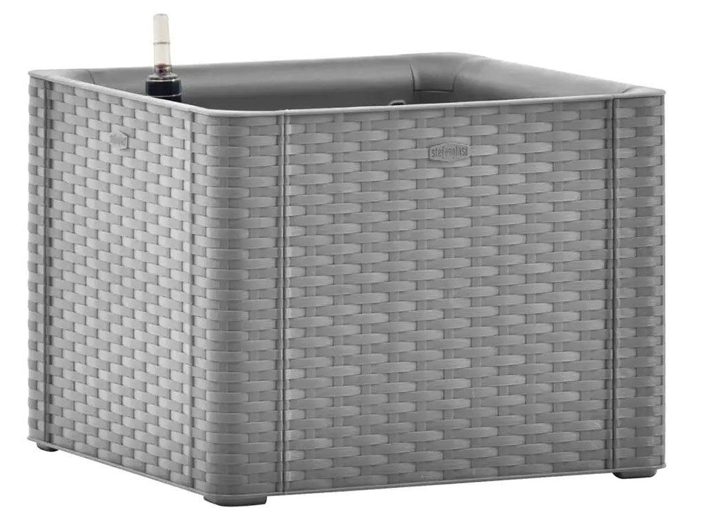 Self-watering flowerpot, forindoor and outdoor use, slevel indicator water, made of polypropylene, colourgrey, swith a volume of 35l, dimensions 43x43x33cm.