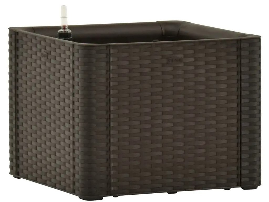 Samozavlažovací kvetináč, pre vnútorné i vonkajšie použitie, s ukazateľom hladiny vody, z polypropylénu, farba moka, s objemom 35l, rozmery 43x43x33cm.