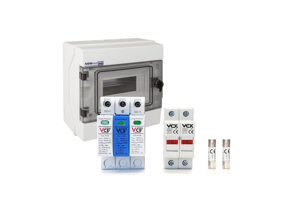 Pre-prepared assembly kit for photovoltaics. Dedicated for separate mounting for 1 string. The delivery contains switchboard + quality components for photovoltaics: surge protectors, fuse disconnectors and fuses.