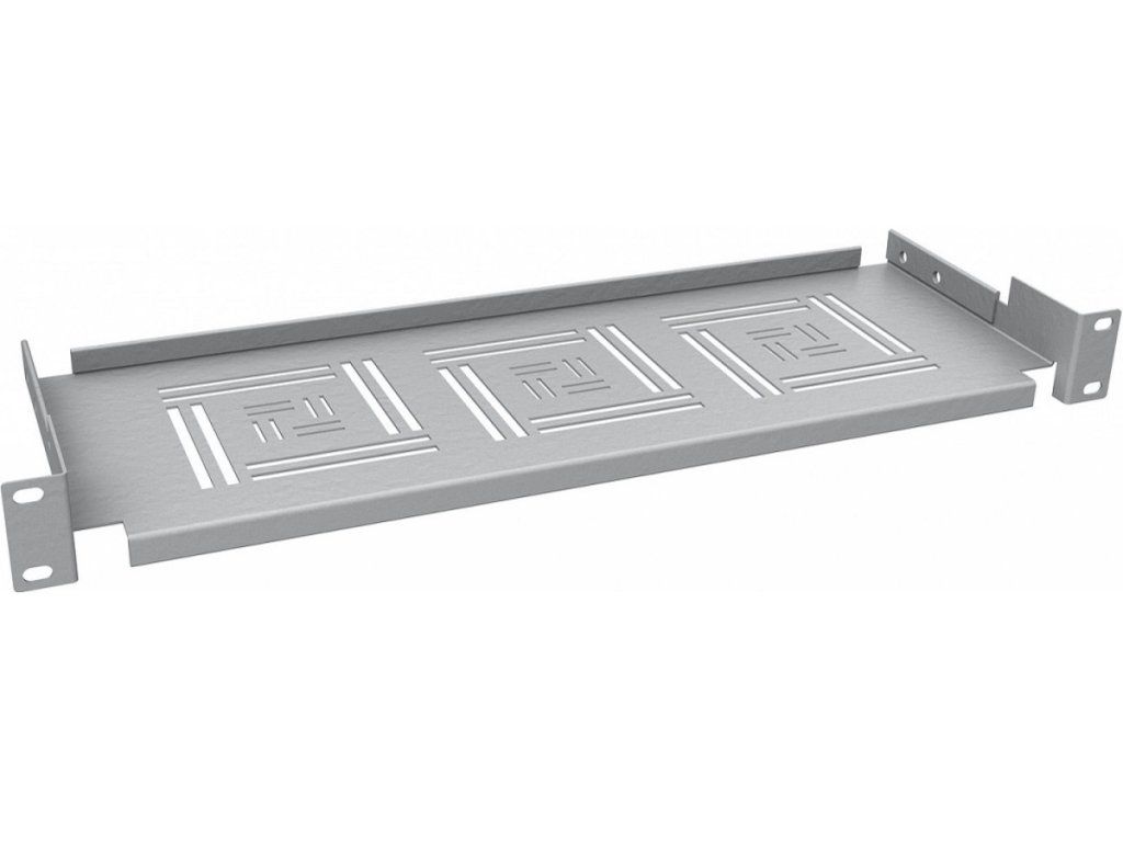 Shelves with two-point attachment to front or rear rails. They are designed to accommodate equipment in a 19" rack, so they are mainly used where the equipment cannot be mounted in a 19" frame. The perforated bottom of the shelf ensures easy air passage. Height in U: 1 Depth in mm: 150 Width: 19" Maximum load capacity: 10kg Number of handles: 2 Fixed shelves are available in standard depths from 150 to 750mm and in 1U and 2U heights. They are designed for 2-point fixing to 19" rails, i.e. to front or rear rails, or 4-point fixing to both front and rear rails. With the addition of further fixings, the shelves can be fixed at up to 6 points. The surface finish is powder coated in standard colours light grey RAL 7035 or black RAL 9005.Additional parameters