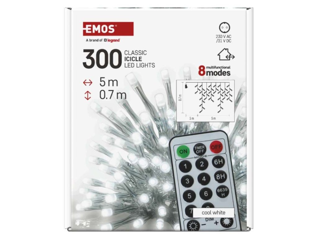 LED vianoč. cencúle, 5 m, vonkajšie aj vnútor., studená biela, ovládač, programy, časovač