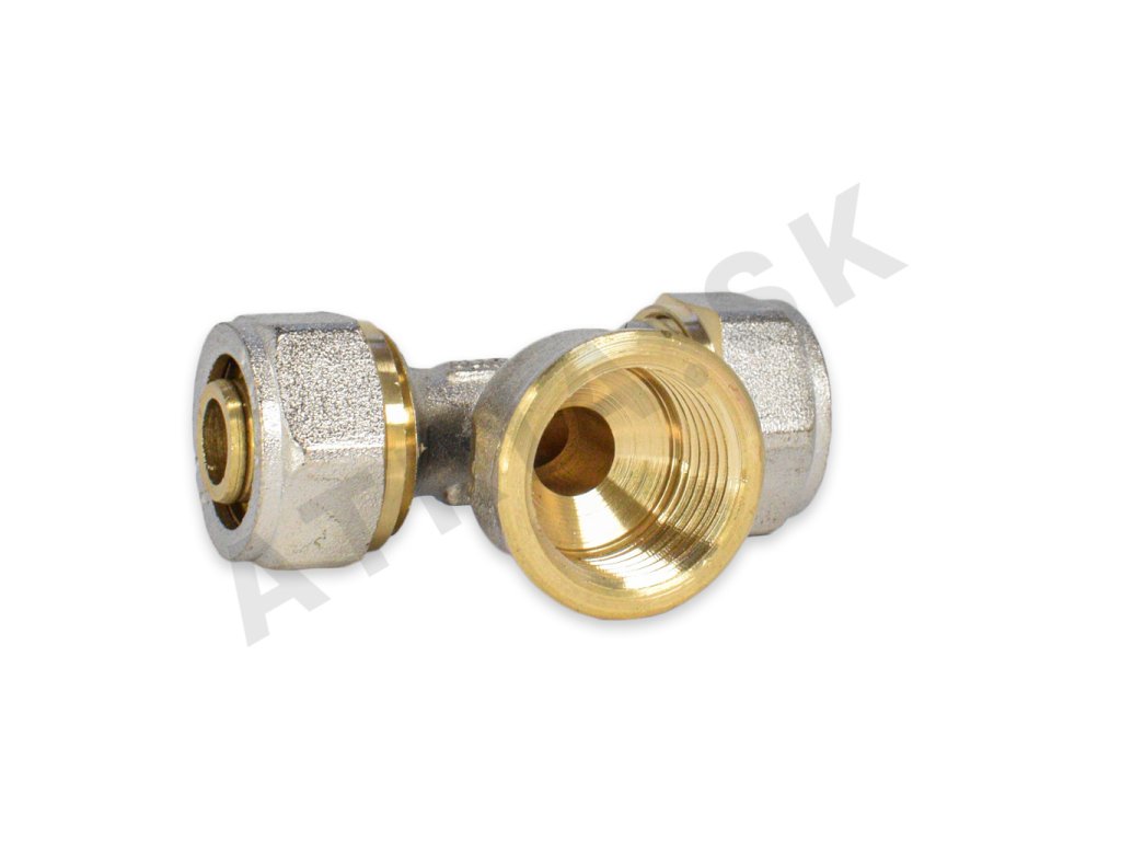 Skrutkované T-kus 20x3/4x20 s horným závitom vnútorným, bez nutnosti lisovania, použitie pre plastohlikové potrubie na vodu, alebo kúrenie.