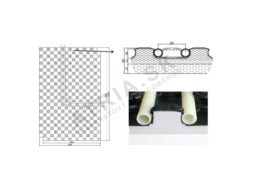 Vo vnútornej časti dosky pod výstupkami sú 5 mm drobné výstupky, ktoré zabezpečujú aby bolo potrubie dokonale obalené zálievkovou hmotou, teda aj od spodu. Tým je zabezpečené dokonalé odovzdanie tepla do vykurovacej dosky po celom obvode potrubia.