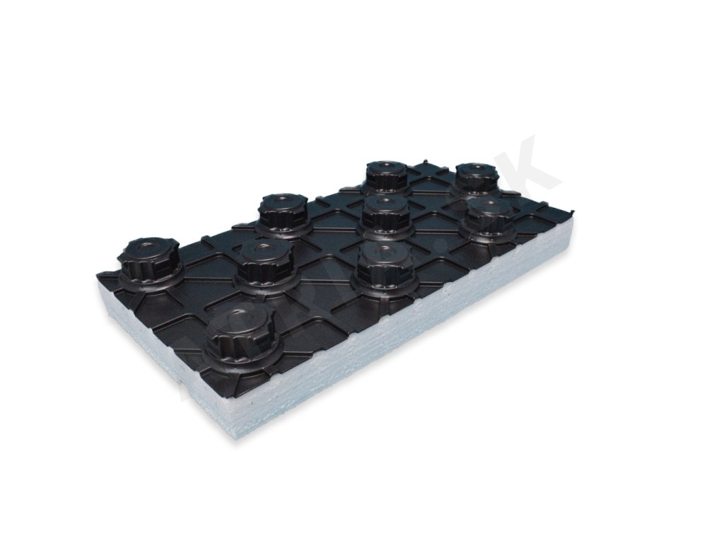 Systémová izolačná polystyrénová doska UHP52 (STIROTERMAL DUO 20) pre podlahové vykurovanie s PS tvrdou fóliou o hrúbke 0,6 mm. Pre veľmi vysoké zataženie.