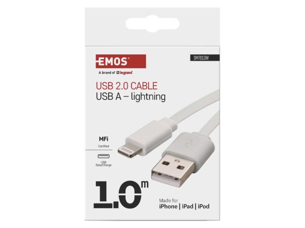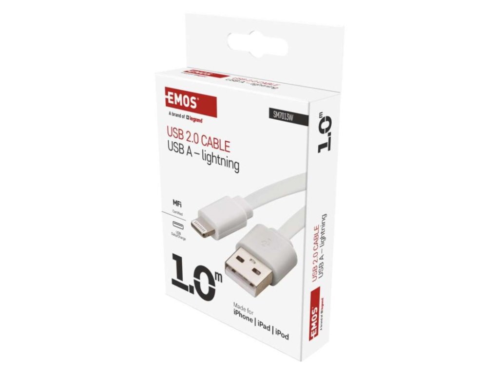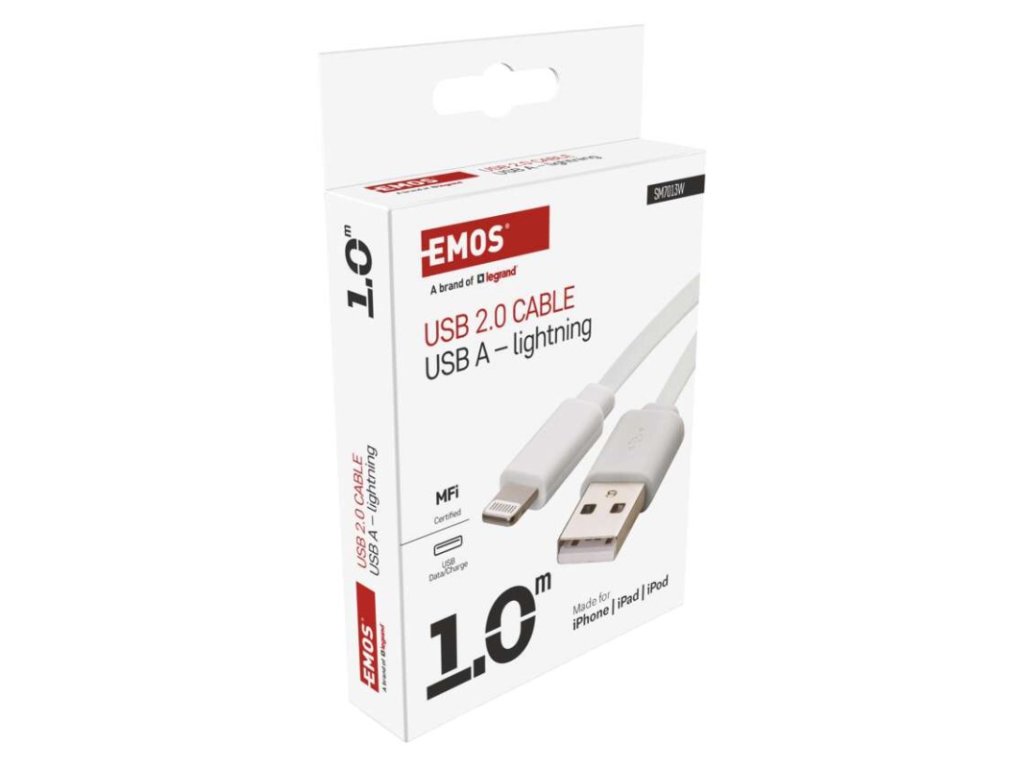 USB-A 2.0 / Lightning MFi charging and data cable, 1 m, white