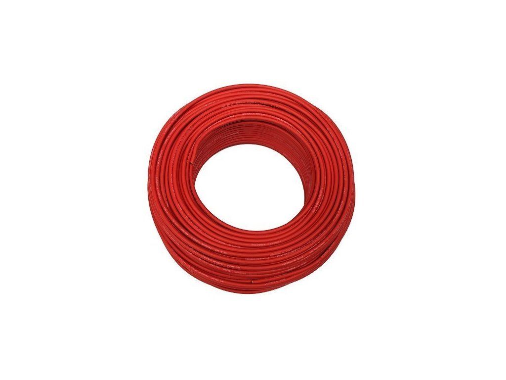 High quality solar cable for professional installations in photovoltaic installations. Made in the EU. TÜV certification. Suitable for permanent outdoor and indoor use. Also suitable for mobile installations, caravans, motorhomes or portable solar panels. Can also be fixed with cable clamps. 100m pack at a discounted price. Technical parameters: - This solar copper cable has optimal mechanical properties in the temperature range from -40°C to +90°C. - It is highly resistant to abrasion, tearing, UV radiation, water and weathering. - Lifetime of 25 years - Insulation: halogen-free special copolymer - Colour: red - Conductor cross-section: 10 mm2 - Conductor diameter: 4.4 mm - Outer diameter: 7.4 mm - Rated voltage V AC/DC: 1000/1800 - Rated current: max. 98 A (Depending on application, more technical data sheet) Price per 100m.Additional parameters