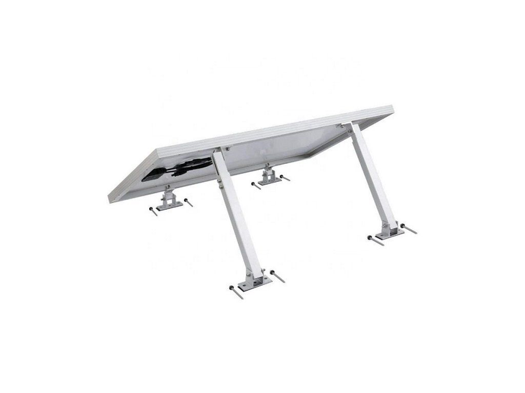 Solar panel bracket LARGE adjustable is used for mounting the solar panel on flat roofs, flat substrates, etc. For panels with aluminium frame. Can be mounted at an angle of inclination of the module according to your exact requirement. Product features: - Adjustable tilt angle - Designed for flat roofs (caravans, flat house roofs, flat ground) - For panels with aluminium frame Product parameters: - Material: anodized aluminium - Colour: Natural - Tilt angle: 30 - 60 degrees - Installation: outdoor - Max. 60 m/s - Max. extension length: 120 cm - Min. length of the extension part is: 67 cm - Footprint, footprint size: 10 x 4 cm Functions 1. Quick installation 2. Stable and safety 3. Long service life 4. Great flexibility Package contents: 2x Anodized aluminium adjustable profiles with hinge, long 2x Anodized aluminium profiles with hinge, short - Mounting material, screws, washers, nuts, rubber gasketsAdditional parameters