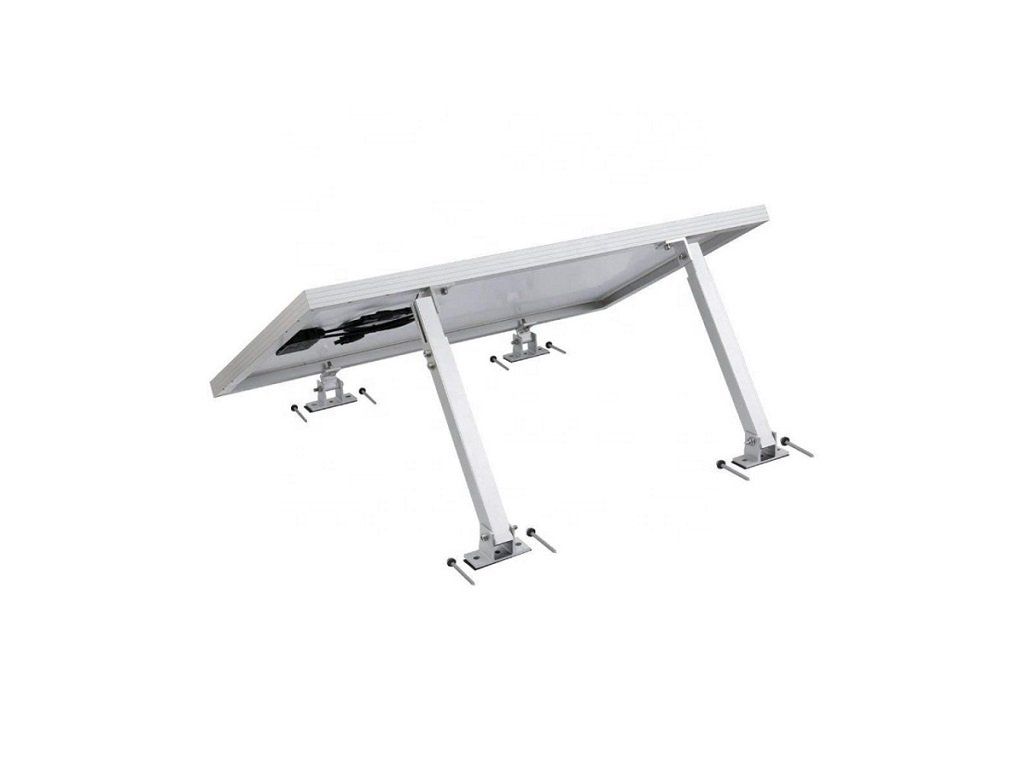 Solar panel bracket adjustable is used for mounting the solar panel on flat roofs, flat substrates, etc. For panels with aluminium frame. Can be mounted at an angle of inclination of the module according to your exact requirement. Product features: - Adjustable tilt angle - Designed for flat roofs (caravans, flat house roofs, flat ground) - For panels with aluminium frame Product parameters: - Material: anodized aluminium - Colour: Natural - Tilt angle: 30 - 60 degrees - Installation: outdoor - Max. 60 m/s - Max. extension length: 65 cm - Min. length of the extension part is: 42 cm - Footprint, dimensions: 10.5 x 4 cm Functions 1. Quick installation 2. Stable and safety 3. Long service life 4. Great flexibility Package contents: 2x Anodized aluminium adjustable profiles with hinge, long 2x Anodized aluminium profiles with hinge, short - Mounting material, screws, washers, nuts, rubber gasketsAdditional parameters