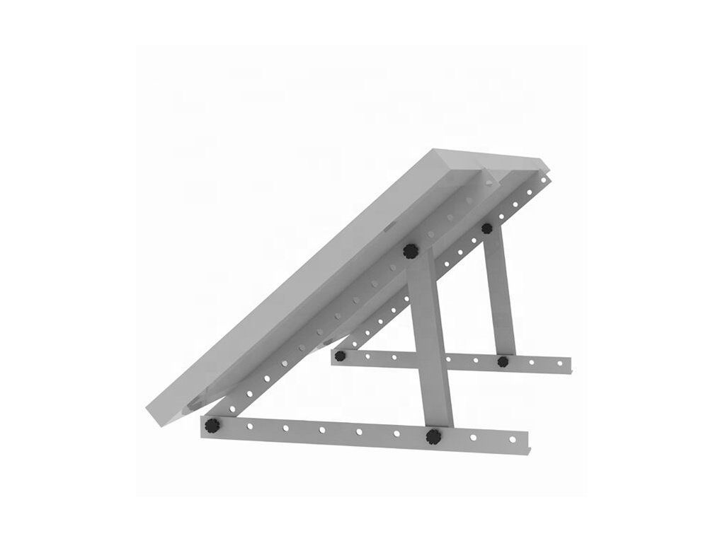 The solar panel bracket is used for mounting the solar panel on flat roofs, flat substrates, etc. For panels with aluminium frame. Can be mounted at an angle of inclination of the module according to your exact requirement. Product features: - Adjustable tilt angle - Designed for flat roofs (caravans, flat house roofs, flat ground) - For panels with aluminium frame Product parameters: - Material: anodized aluminium - Colour: Natural - Tilt angle: 10 - 60 degrees - Installation: outdoor - Max. 60 m/s - Weight of the brackets: 1.5 Kg - Max. length of panel mounting holes: 67 cm - Profile dimension:30 x 30 Features 1. Quick installation 2. Stable and safety 3. Long service life 4. Great flexibility Package contents: 4x Anodized aluminium adjustable profiles. Length 718mm, Depth 30mm, Height 30mm (Material thickness 2mm) 2x Short anodised aluminium triangular profiles. Length 375mm, Height 30mm (Material thickness 2mm) 6x Bolts, nuts and washers with thumb turn 4x Fastening nuts and boltsAdditional parameters