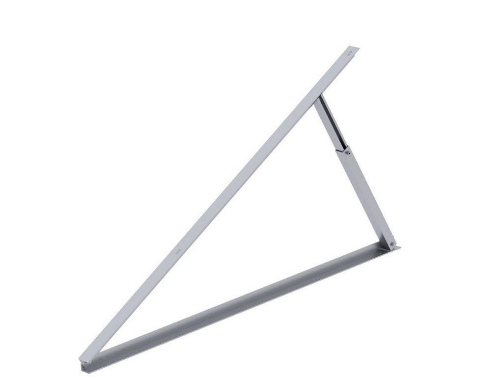 The solar panel bracket is used for mounting large solar panels on flat roofs, flat substrates, etc. For panels with aluminium frame. Can be mounted at an angle of inclination of the module according to your exact requirement. Adjustable triangular design to SC brackets for mounting solar panels on flat roof. - simple design with pre-assembled components - high quality and long lifetime - adjustable inclination <60° - wind resistant design up to 60 m/s - load up to 143 kg/m2 - anodised aluminium (6005-T5) and stainless steel (AISI 304) Product parameters: - Material: anodized aluminium, stainless steel - Colour: Natural, silver - Tilt angle: 35 - 60 degrees - Installation: outdoor - Max. 60 m/s wind speed - Weight of brackets: 1.5 Kg - Load: < 1.4 kN/m2 - Standard: AS, NZS 1170, JIS H5 302-2000 Bracket dimensions: - Length of aluminium profile for flat base: 150 cm - Length of aluminium profile for solar panel: 150 cm - Adjustable aluminium profile length: 75 - 130 cm Functions 1. Quick installation 2. Stable and safety 3. Long service life 4. Great flexibility Package contents: 1x Anodized aluminium solar panel holder triangular LARGE, adjustable inclination 1x Mounting kit to assemble the bracket 3x Mounting metal anchor M8 x 120Additional parameters