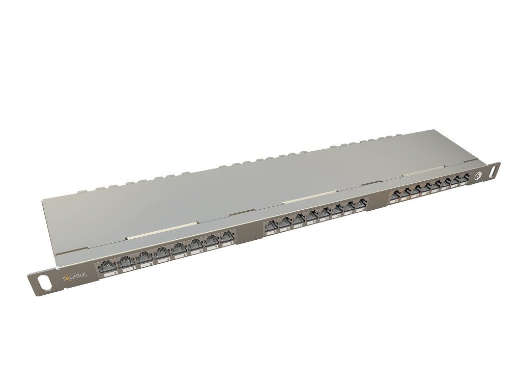 Solarix patch panel 24 x RJ45 CAT6 STP CAT6 with tie bar silver 0,5U, SX24HD-6-STP-SL