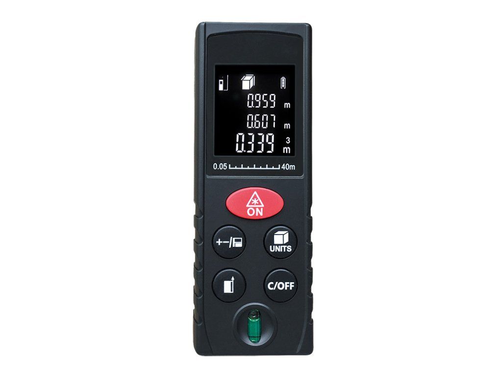 Measuring distance, calculating area, volume and measuring using the Pythagorean theorem (calculating the length of the third side from two known side lengths). Technical parameters: - distance measurement range: 0.05 - 40m - units: m, ft, in - laser class: II, less than 1mW - laser type: 620-690nm - measurement accuracy ±2mm - resolution: 1mm - temperature range of use 0 - 40°C - display backlight - spirit level - memory for last 20 measurements - automatic shutdown - number of measurements without battery change: >5000 - low battery indicator - battery: 2x1.5V, AAA - dimensions: 110x40x25mmAdditional parameters
